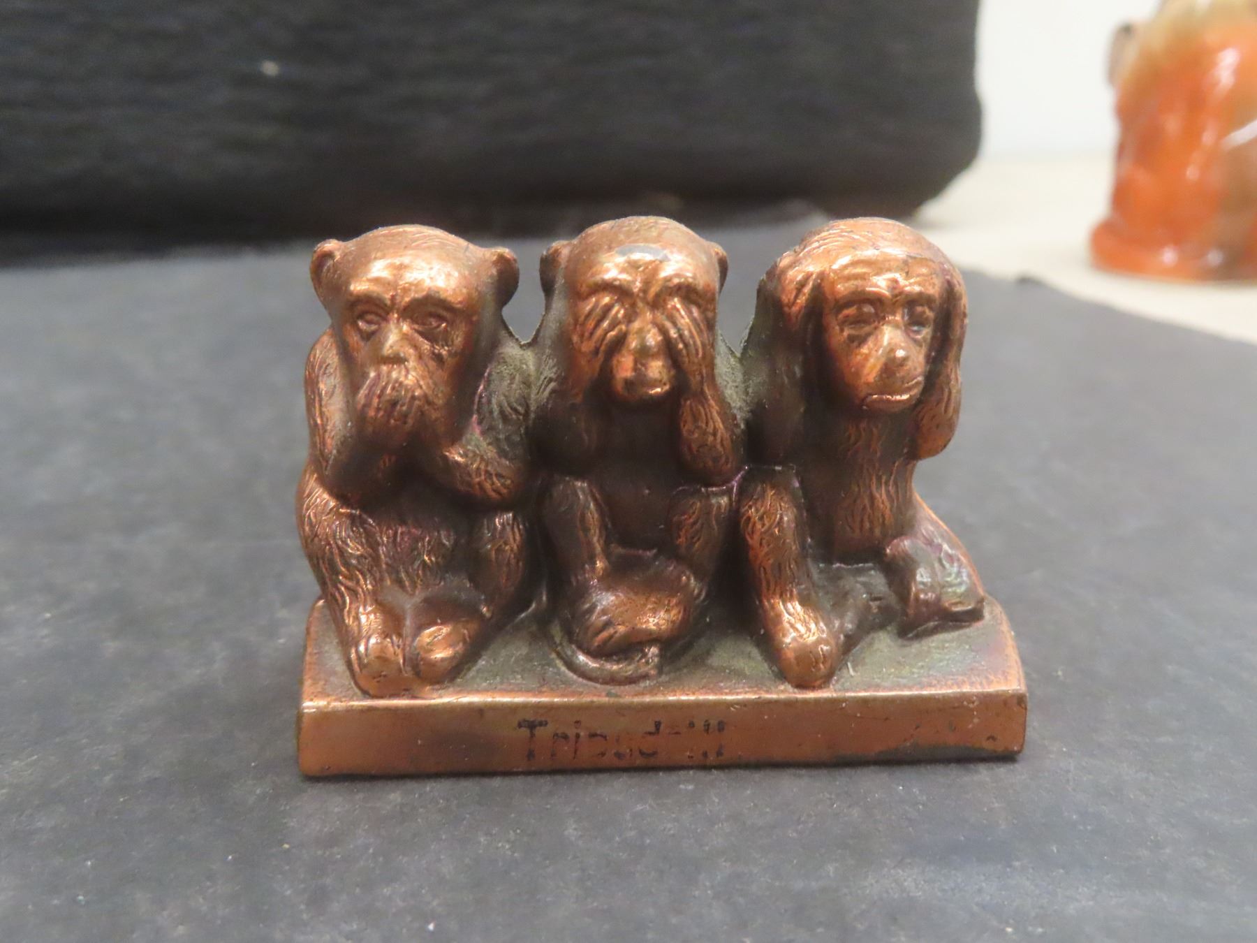Lot 249 Assorted Figurines: St. Bernard Salt and Pepper Set; Copper See/Hear/Speak No Evil Monkeys; 2 Wade