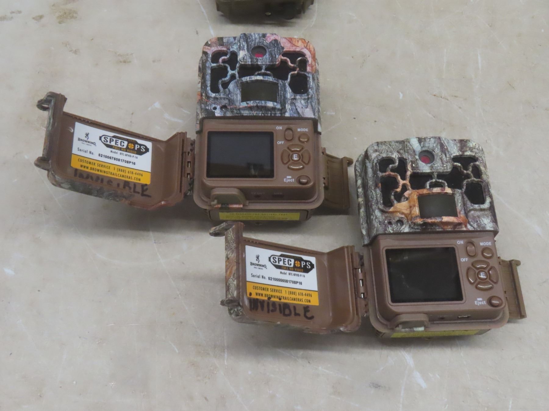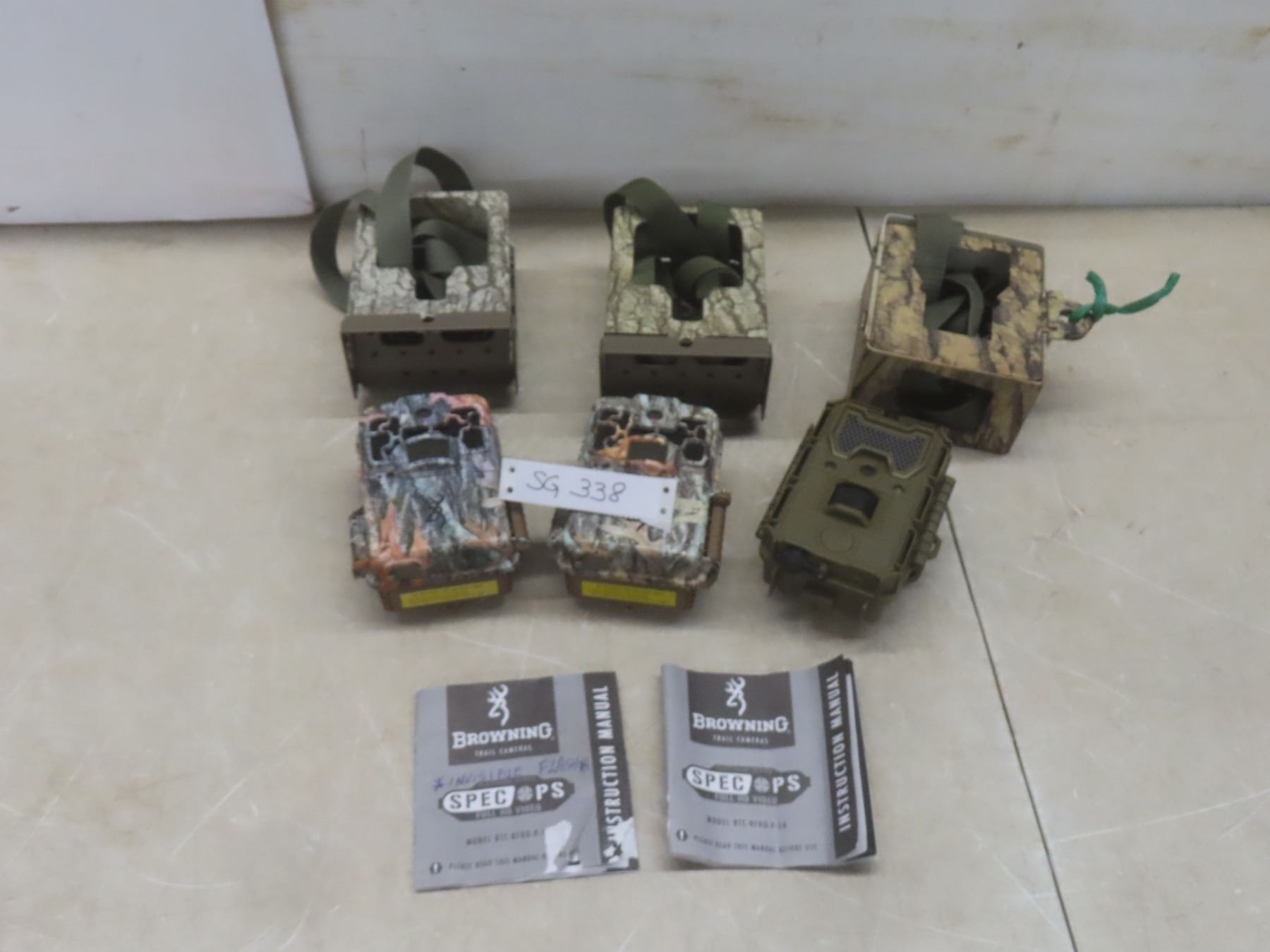 2 Trail Cameras: Bushnell Trophy and 2 Browning Spec-Ops; 3 Steel Lock Boxes; Fresh Batteries, SD Cards and Tree Straps – In Working Order