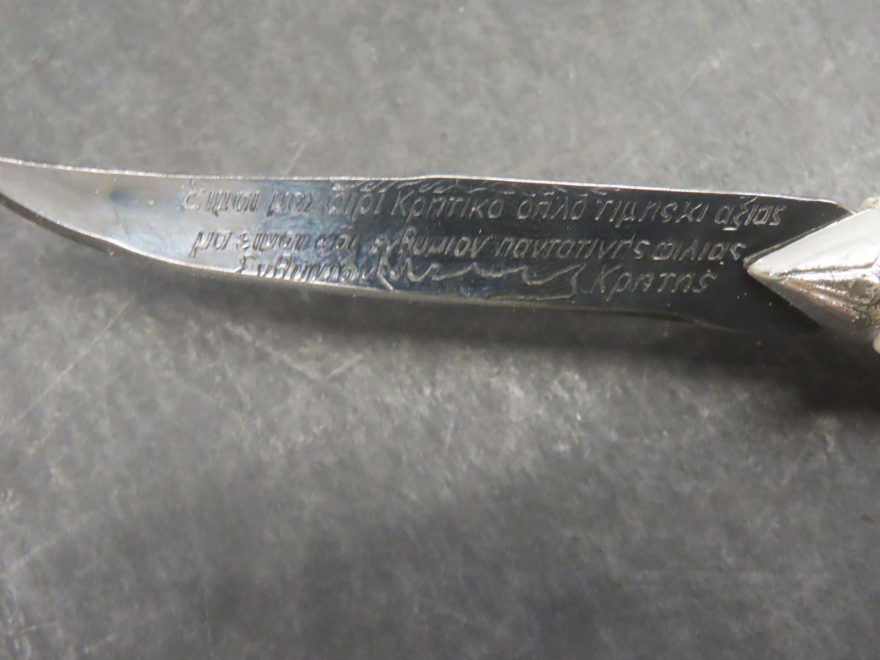 Lot 349B Greek Cretan Knife No. 3 – Stainless Steel Blade, Silver Sheath and Handle