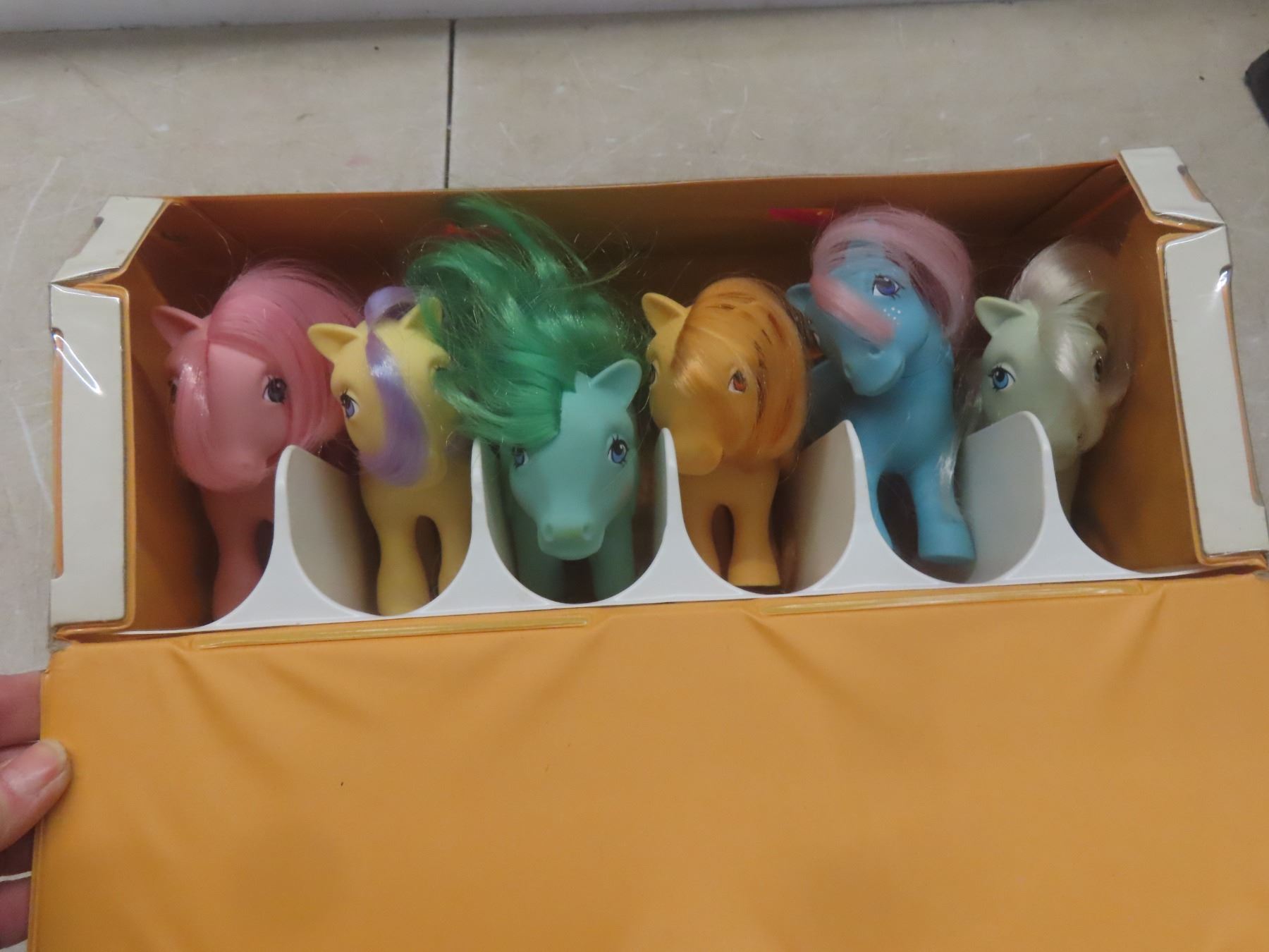 Lot 411 Vintage 1983 Hasbro My Little Pony Carry Case with 6 Ponies – Very Good Shape