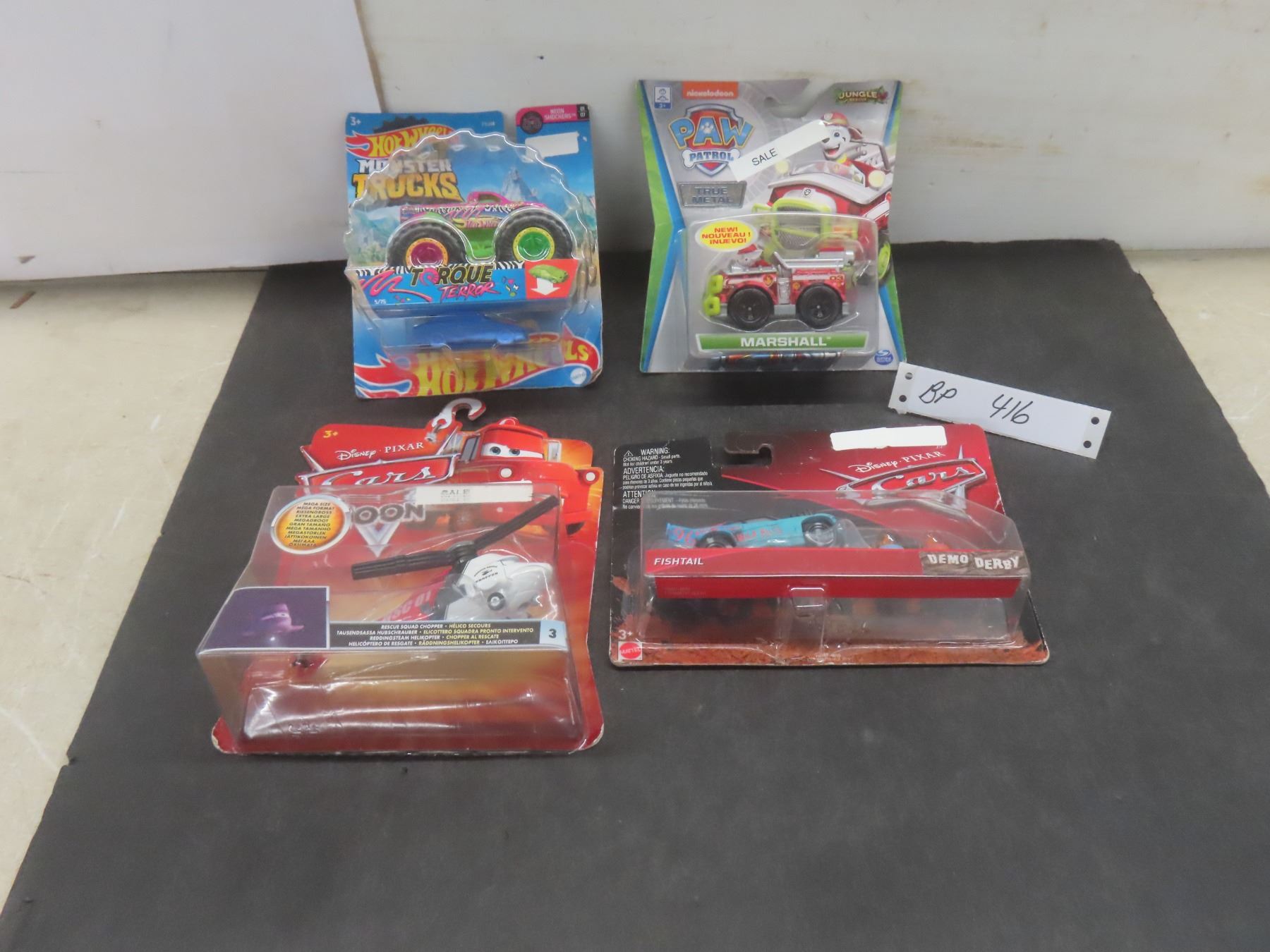 Lot 416B 4 Packs of Toys: 2 Disney Pixar Cars, 1 Paw Patrol, 1 Hot Wheels