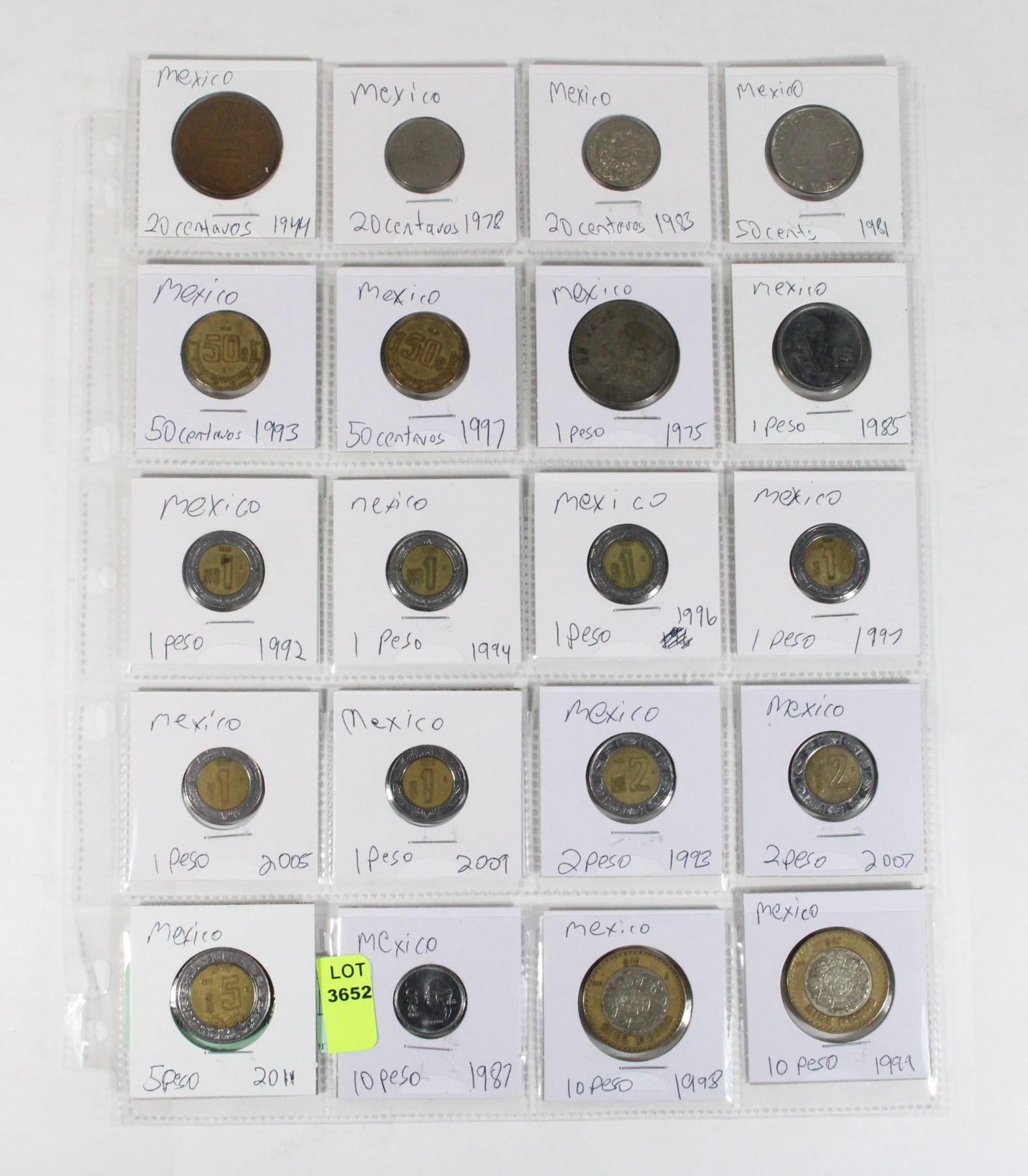 20 COINS ALL MEXICO