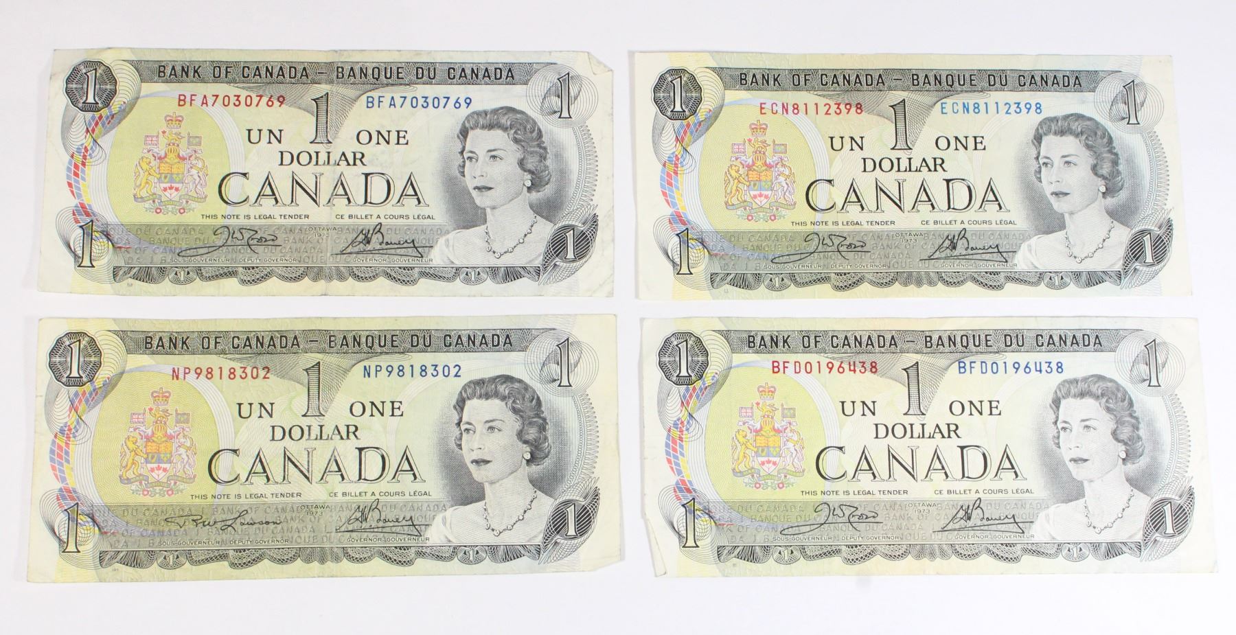 Lot 5392 LOT OF 4 1973 CANADIAN $1 BANK NOTES