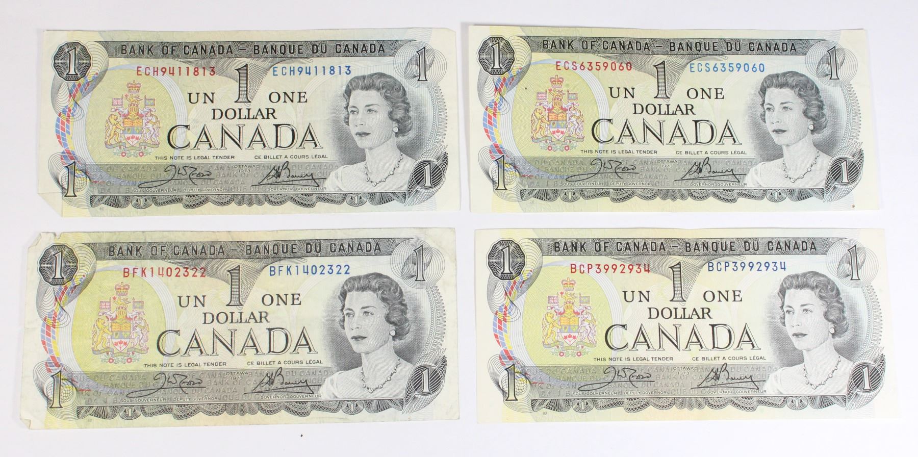 Lot 5393 LOT OF 4 1973 CANADIAN $1 BANK NOTES