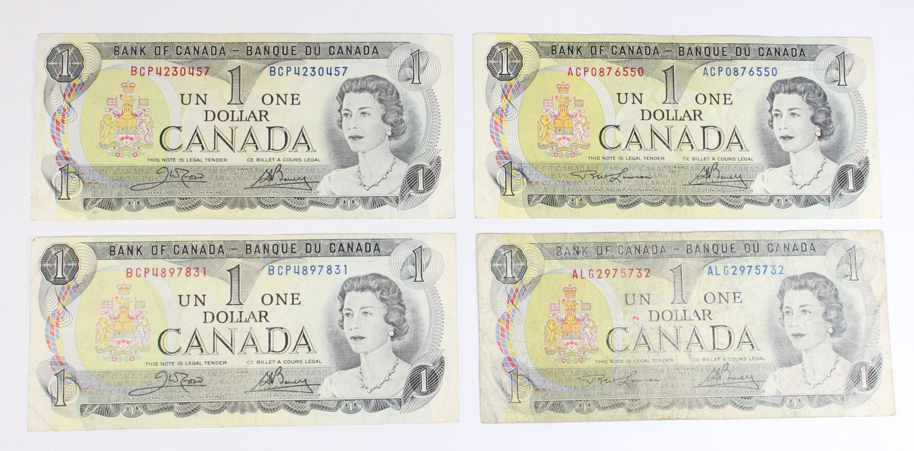 Lot 5394 LOT OF 4 1973 CANADIAN $1 BANK NOTES