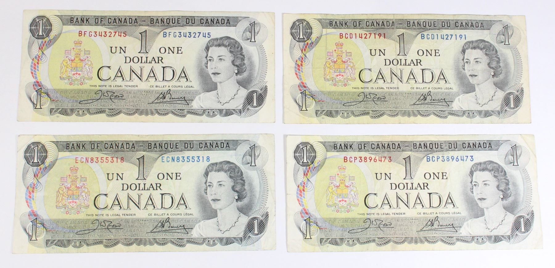 Lot 5395 LOT OF 4 1973 CANADIAN $1 BANK NOTES