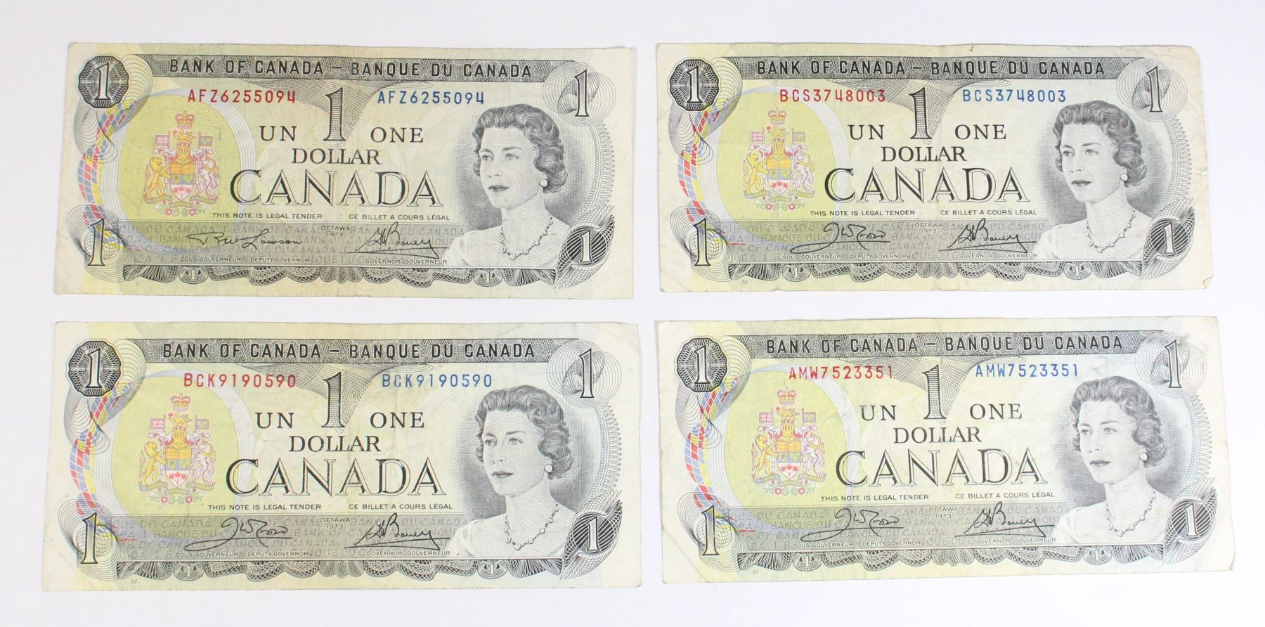 LOT OF 4 1973 CANADIAN $1 BANK NOTES