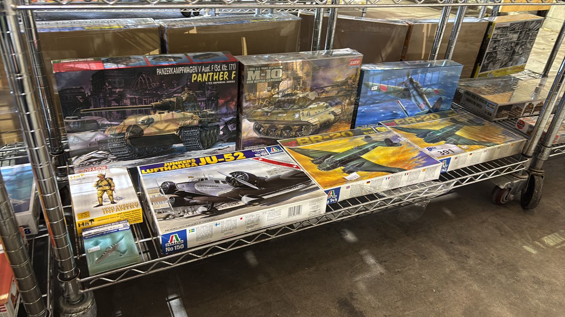 Lot 391 SHELF OF ASSORTED MODEL KITS: AIRPLANES, TANKS & MILITARY FIGURES