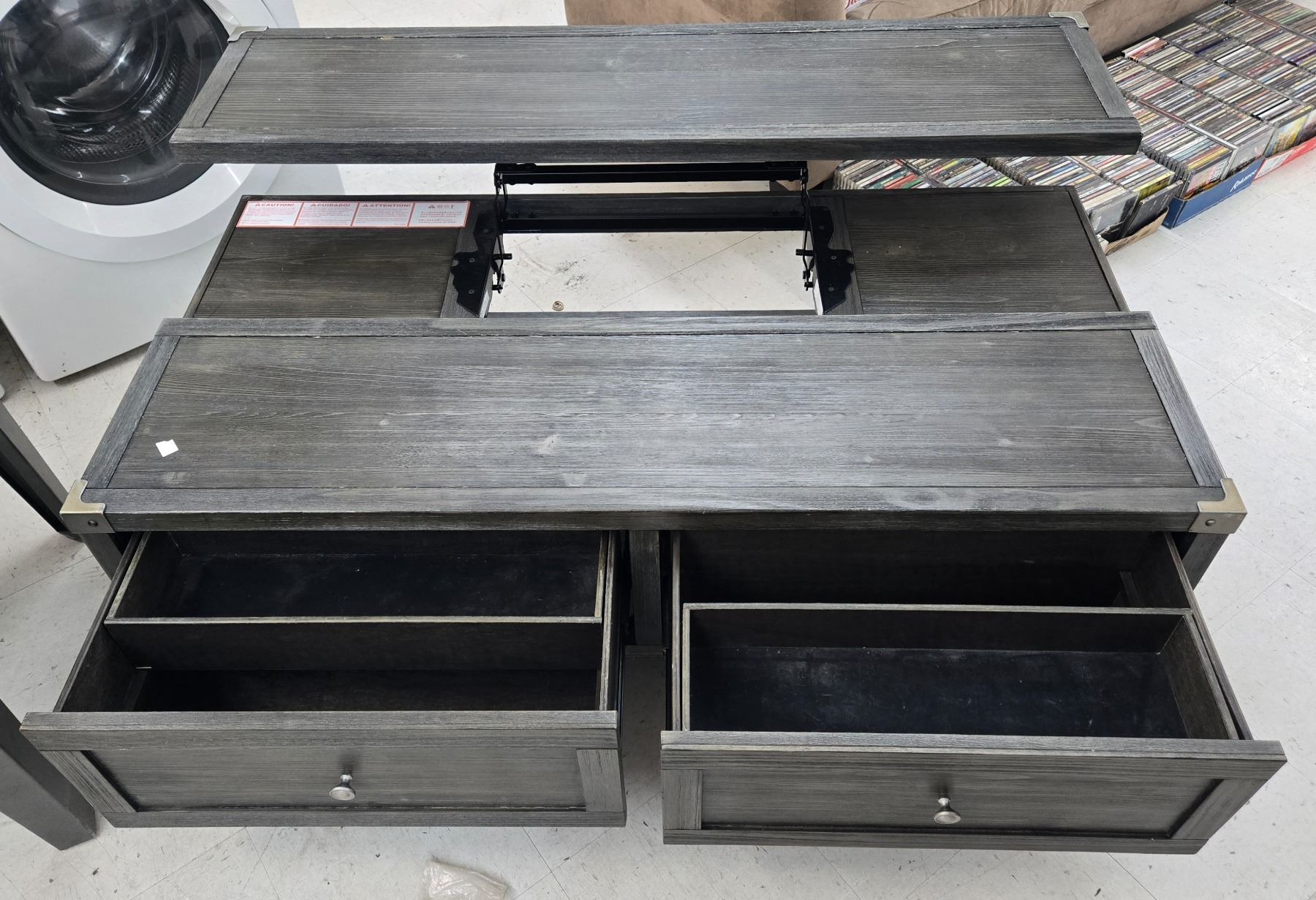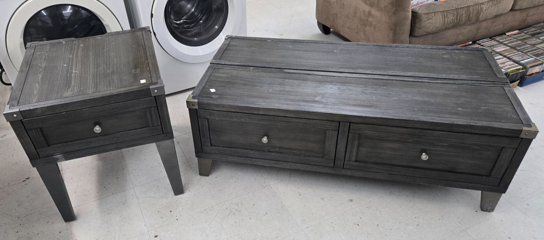 very good condition, coffee table has lift table, end table has electrical outlets and USB plugs in it. c52
