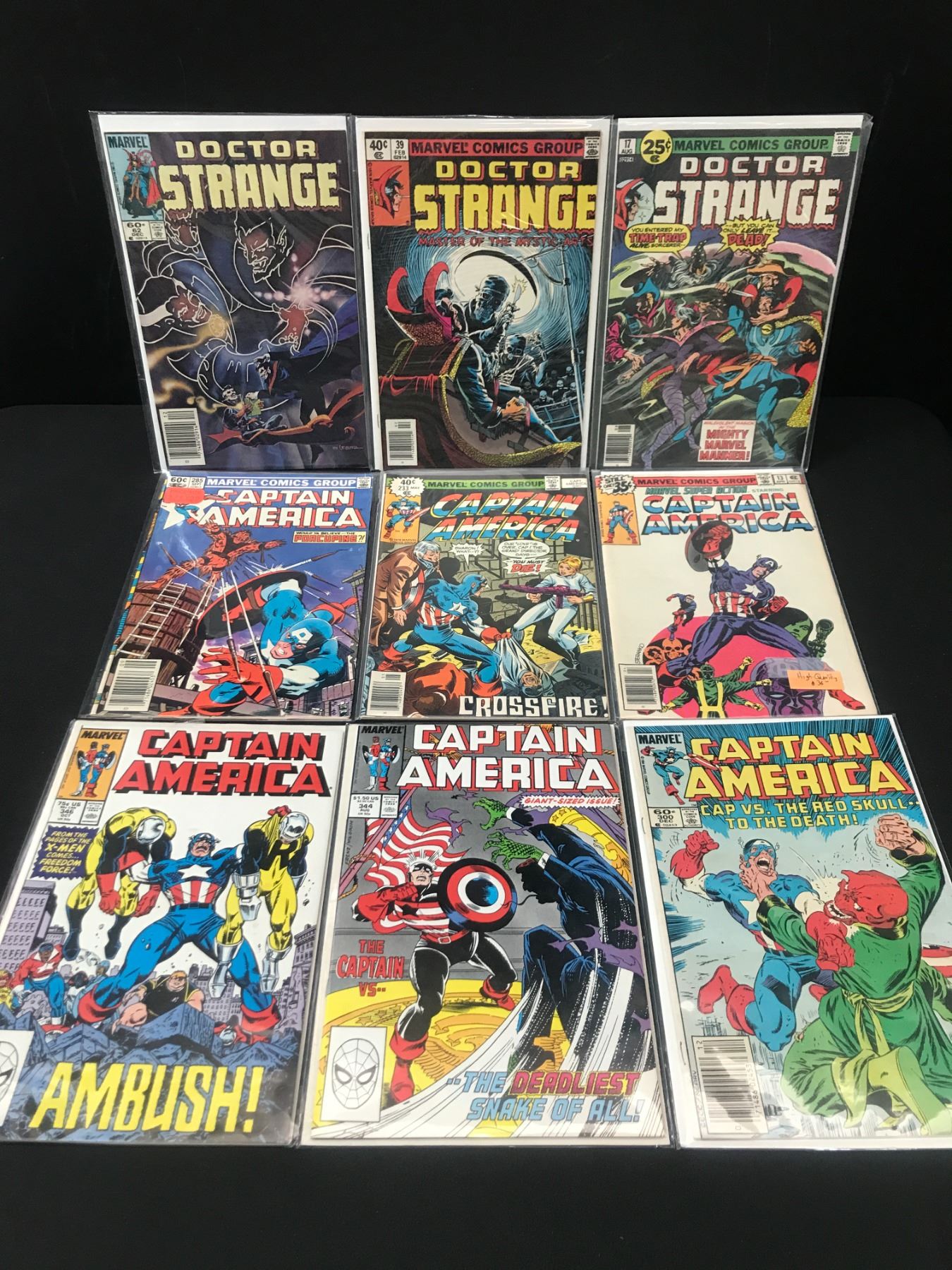 Lot 608 LOT OF 9 MARVEL COMICS - DR STRANGE AND CAPTAIN AMERICA