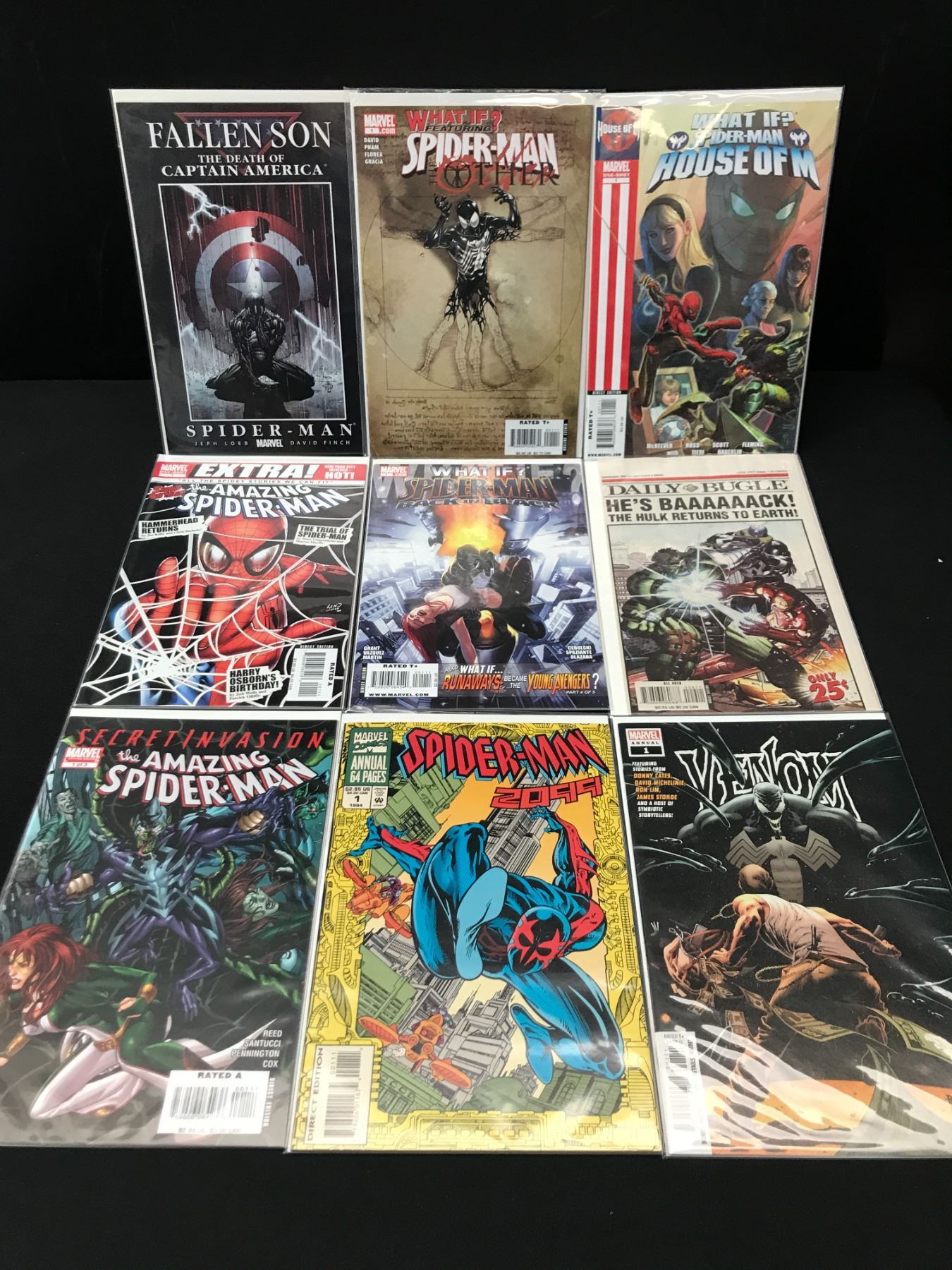 Lot 642 LOT OF 9 COMICS FEATURING SPIDERMAN OR VENOM - MARVEL COMICS