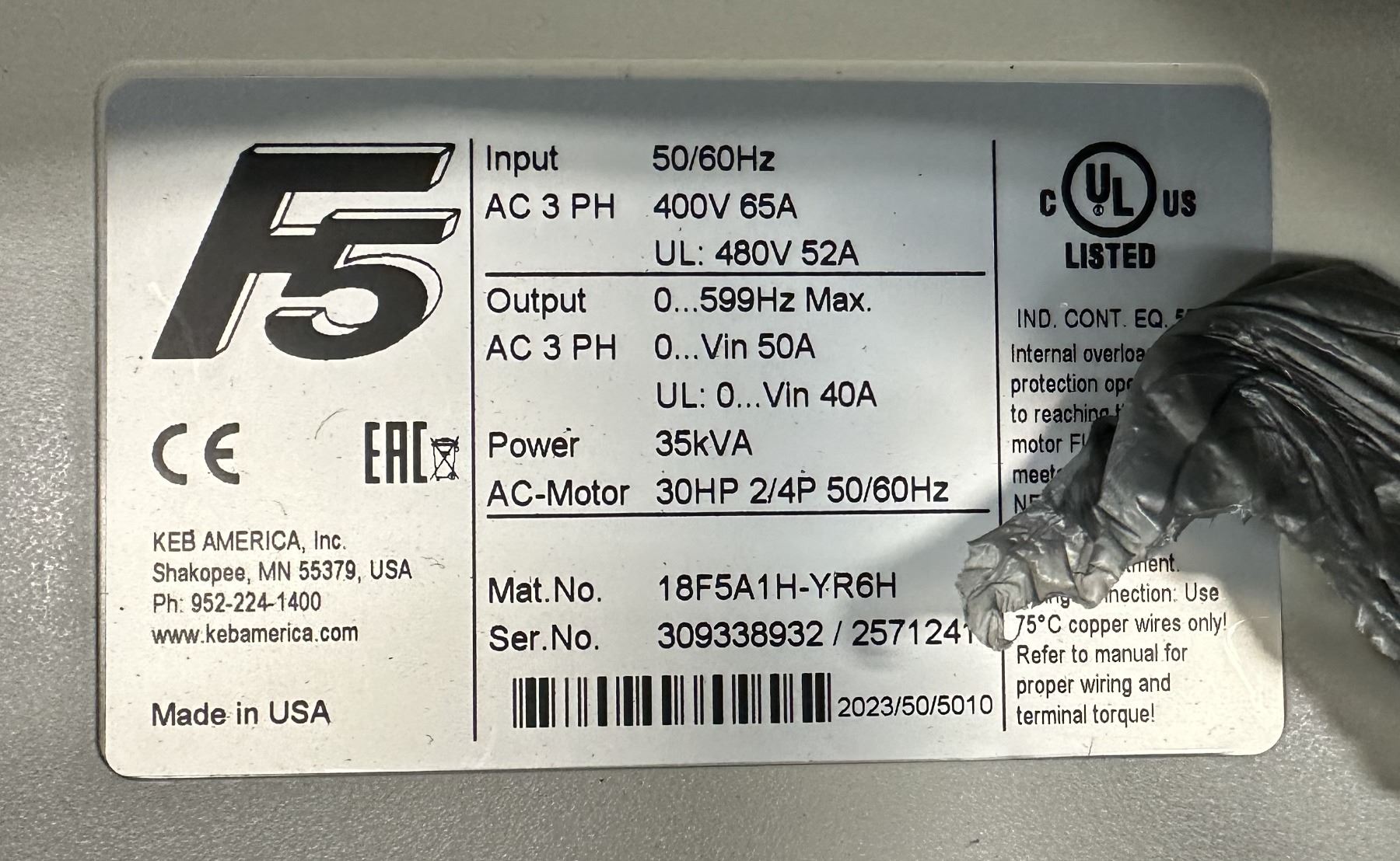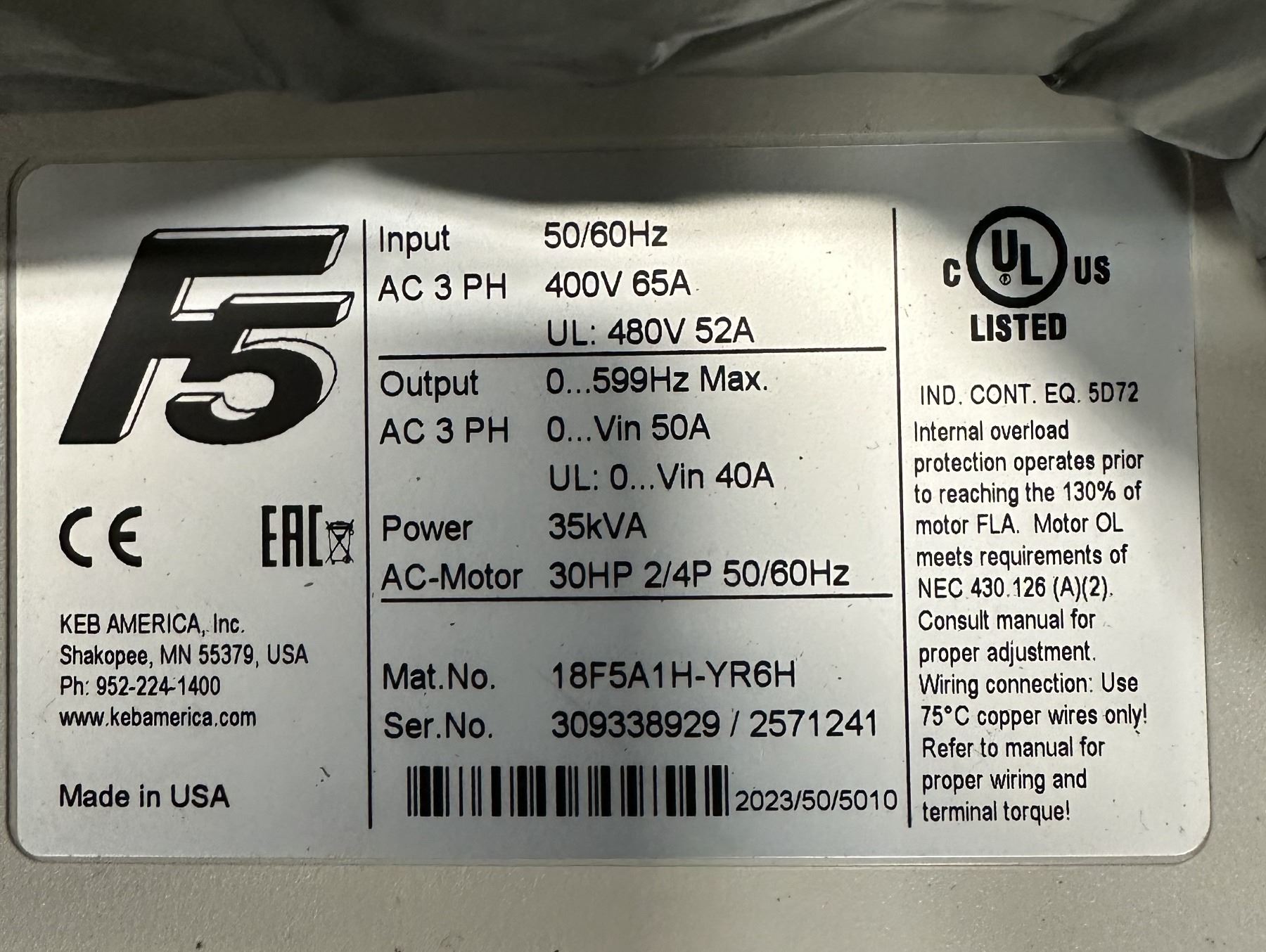 (5) Keb #18F5A1H-YR6A Variable Frequency Drives