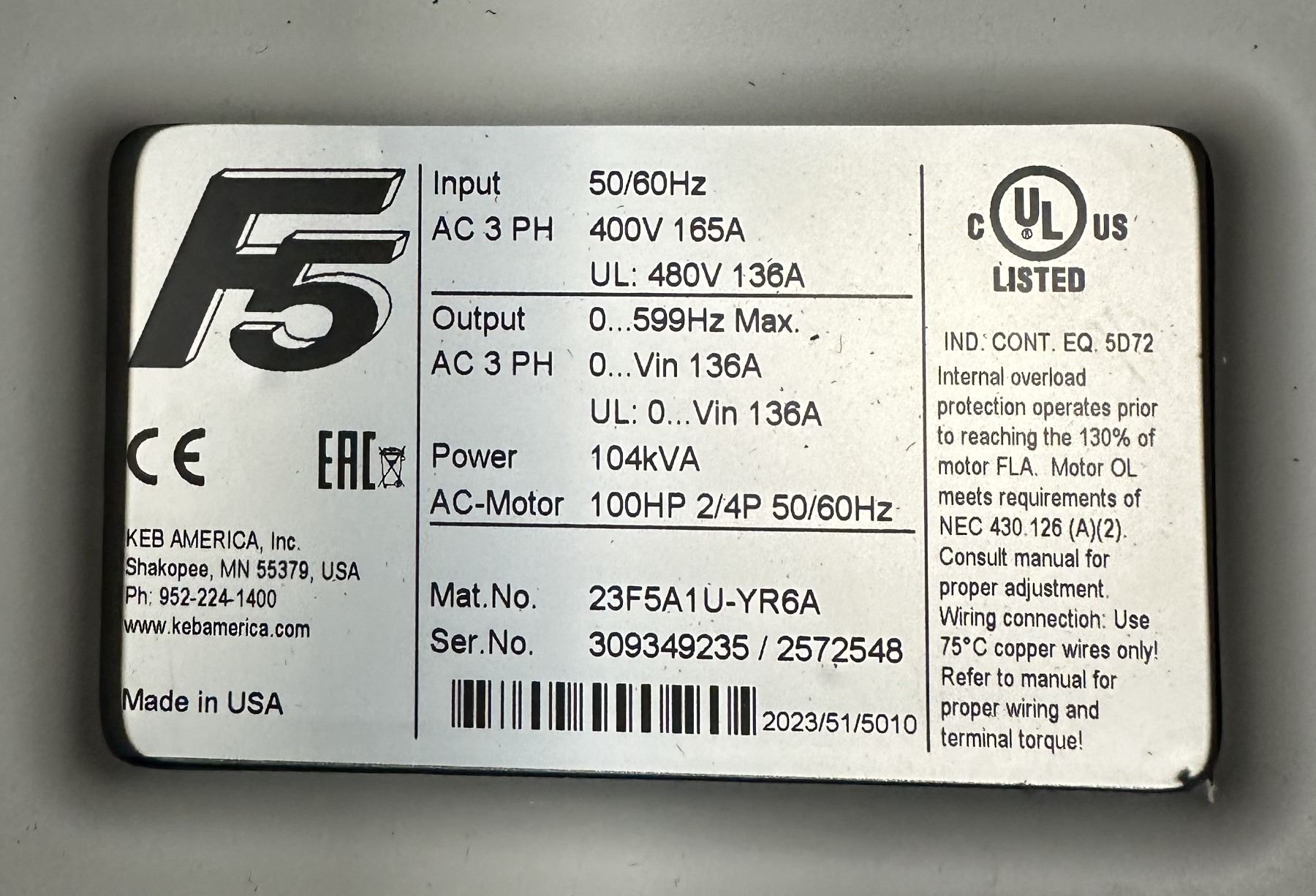Lot 11P Keb #23F5A1U-YR6A Haitian Injection Molding Inverter