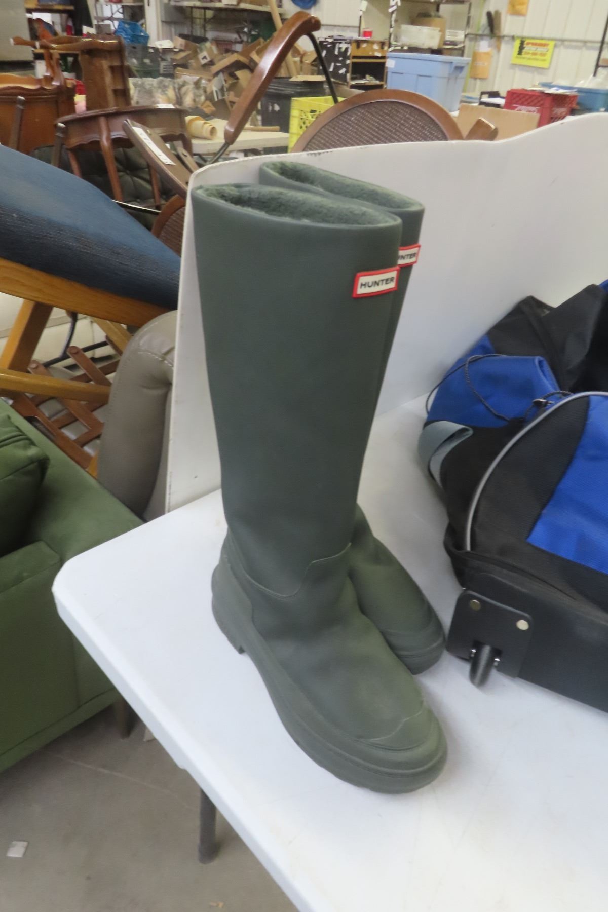 Rolling Hockey Bag, Size 11 Insulated Rubber Boots, Large Winter Jacket