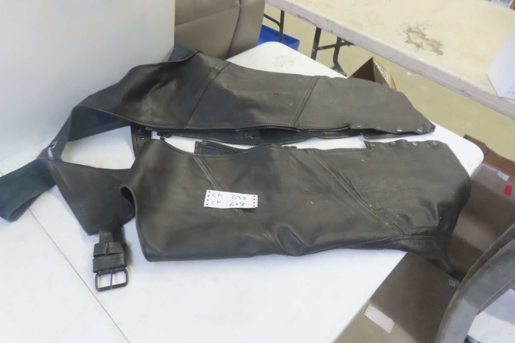 Lot 638 Victory Windbreak Jacket, Size Large; Leather Chaps, Size XL