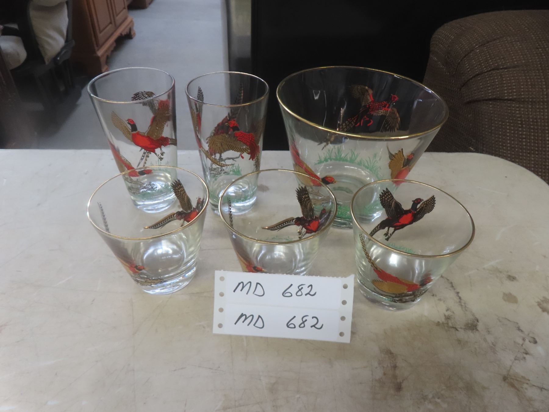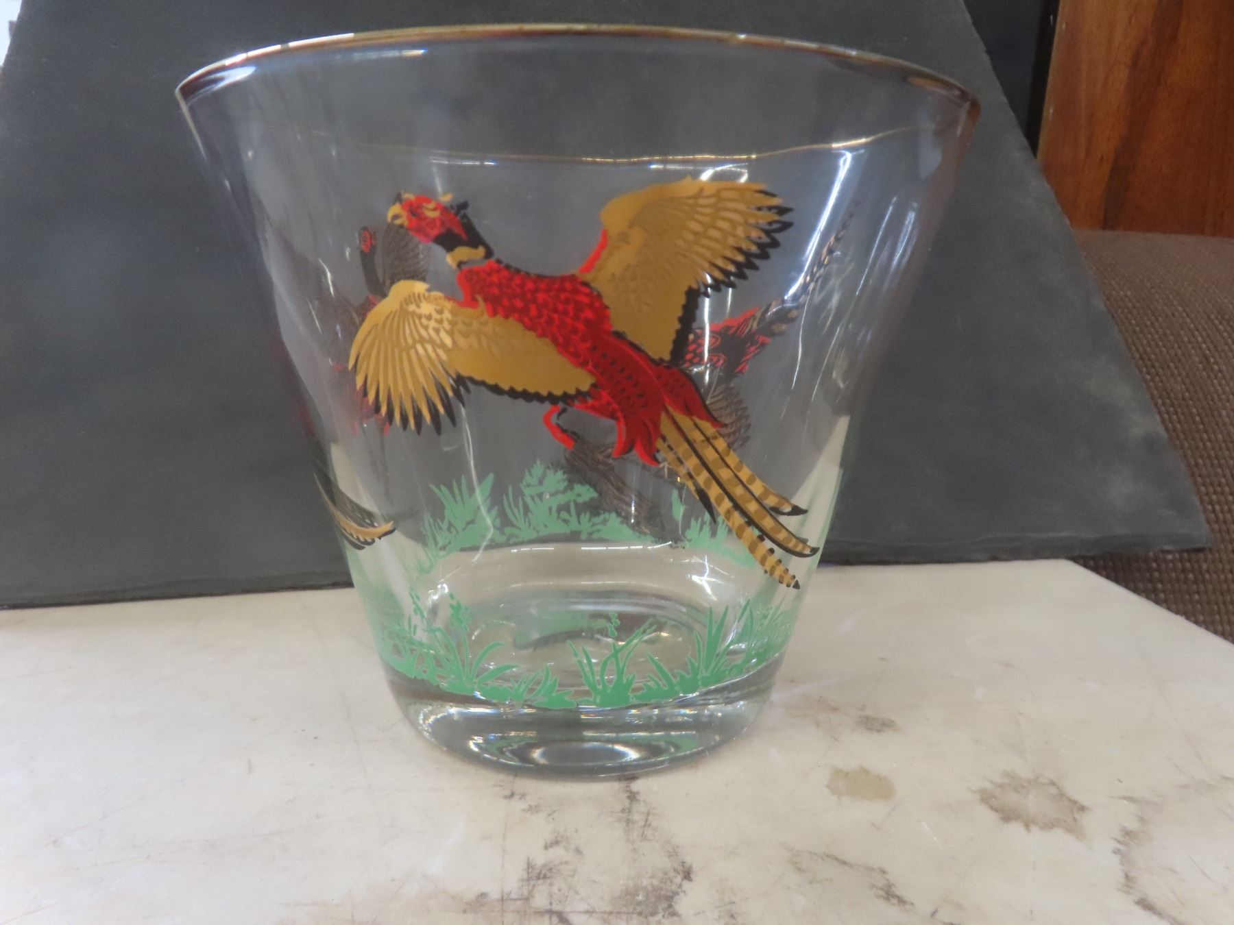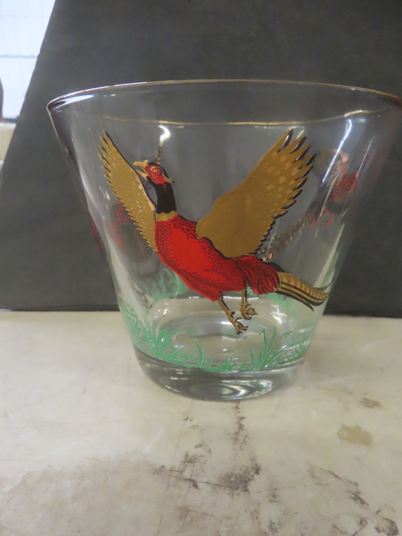 Lot 682 Hazel Atlas Red Bird "Pheasant Collection" Ice Bucket with 5 Matching
