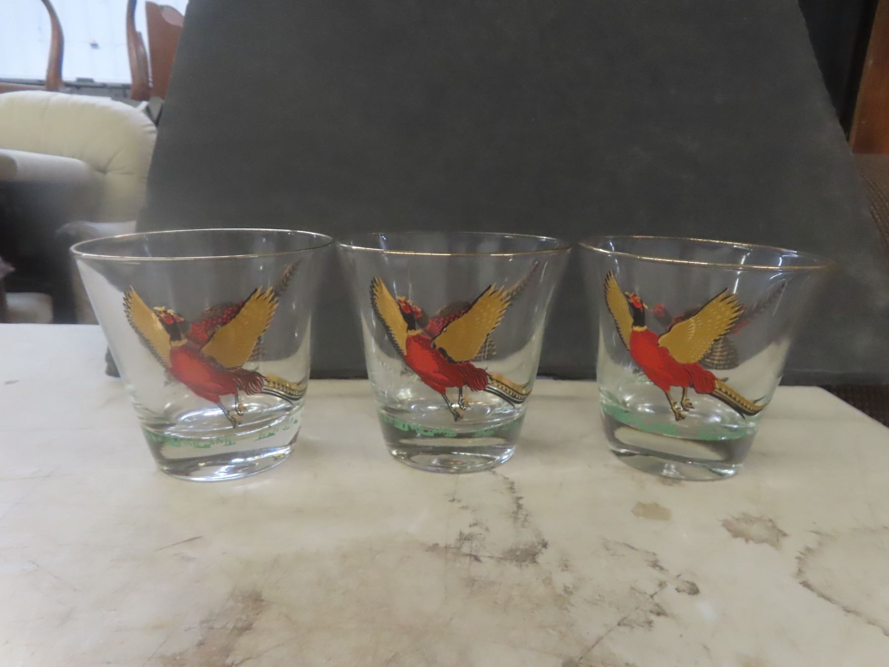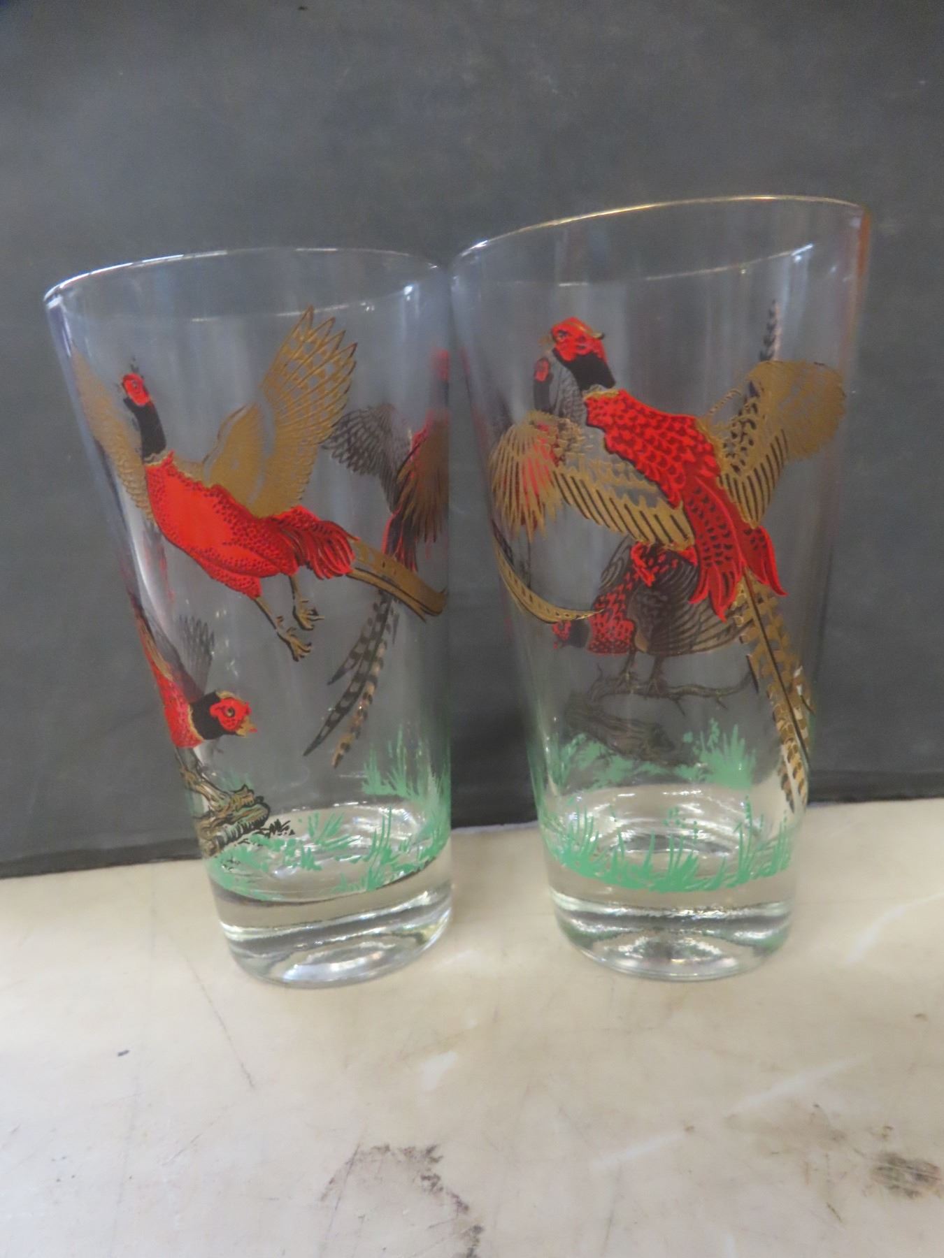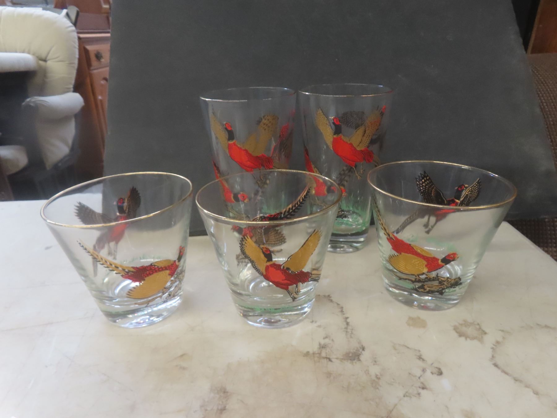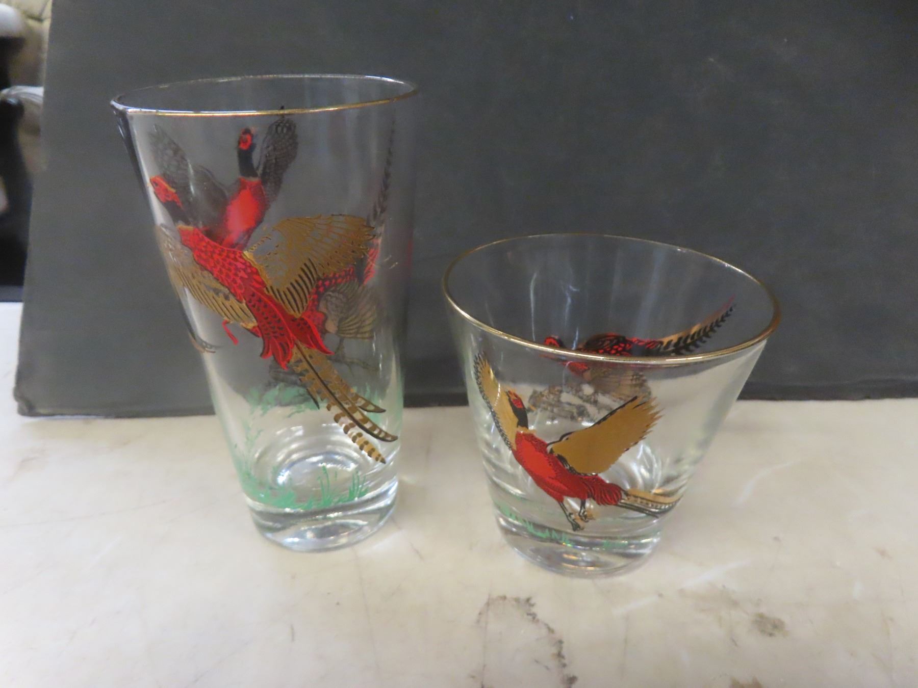 Lot 682 Hazel Atlas Red Bird "Pheasant Collection" Ice Bucket with 5 Matching