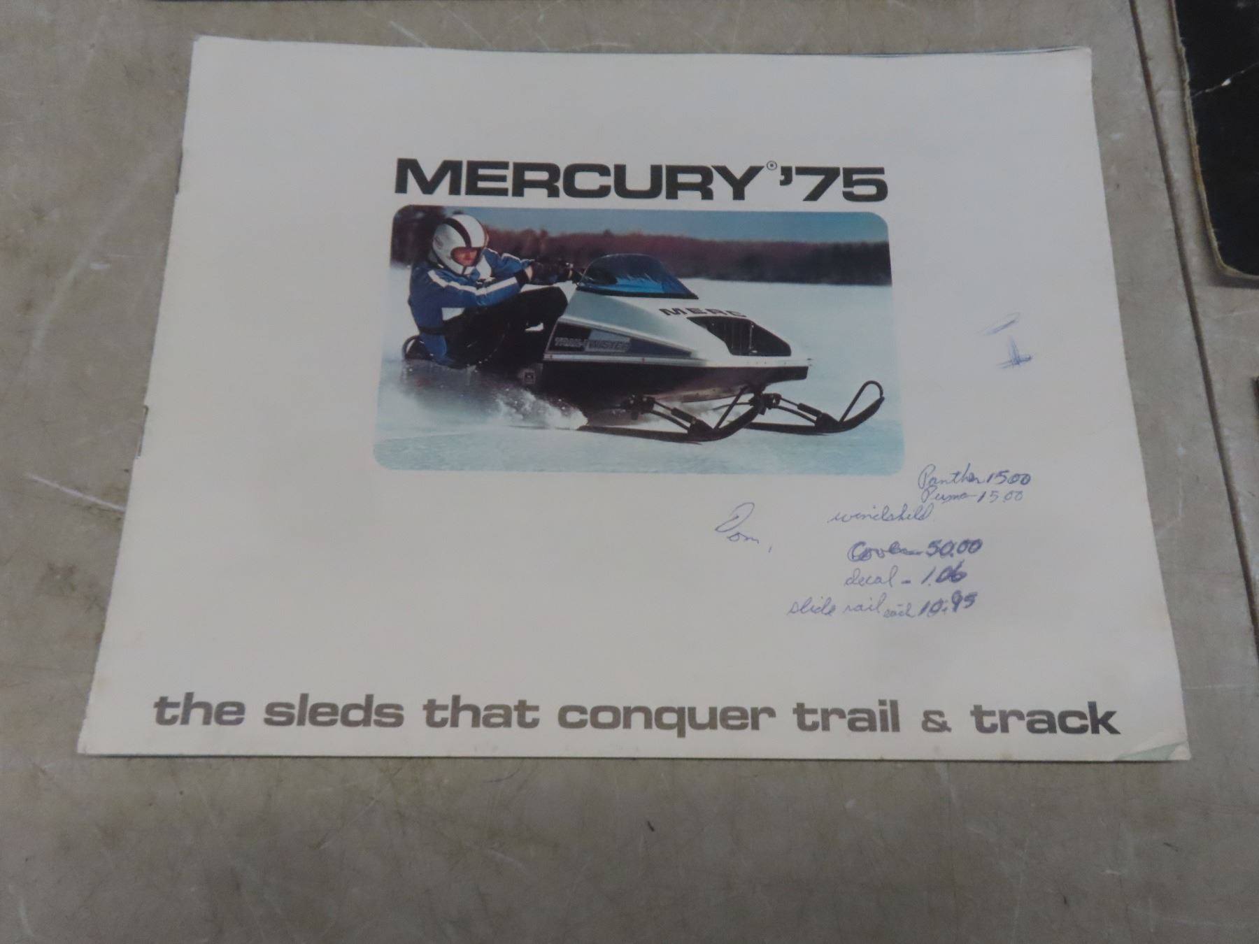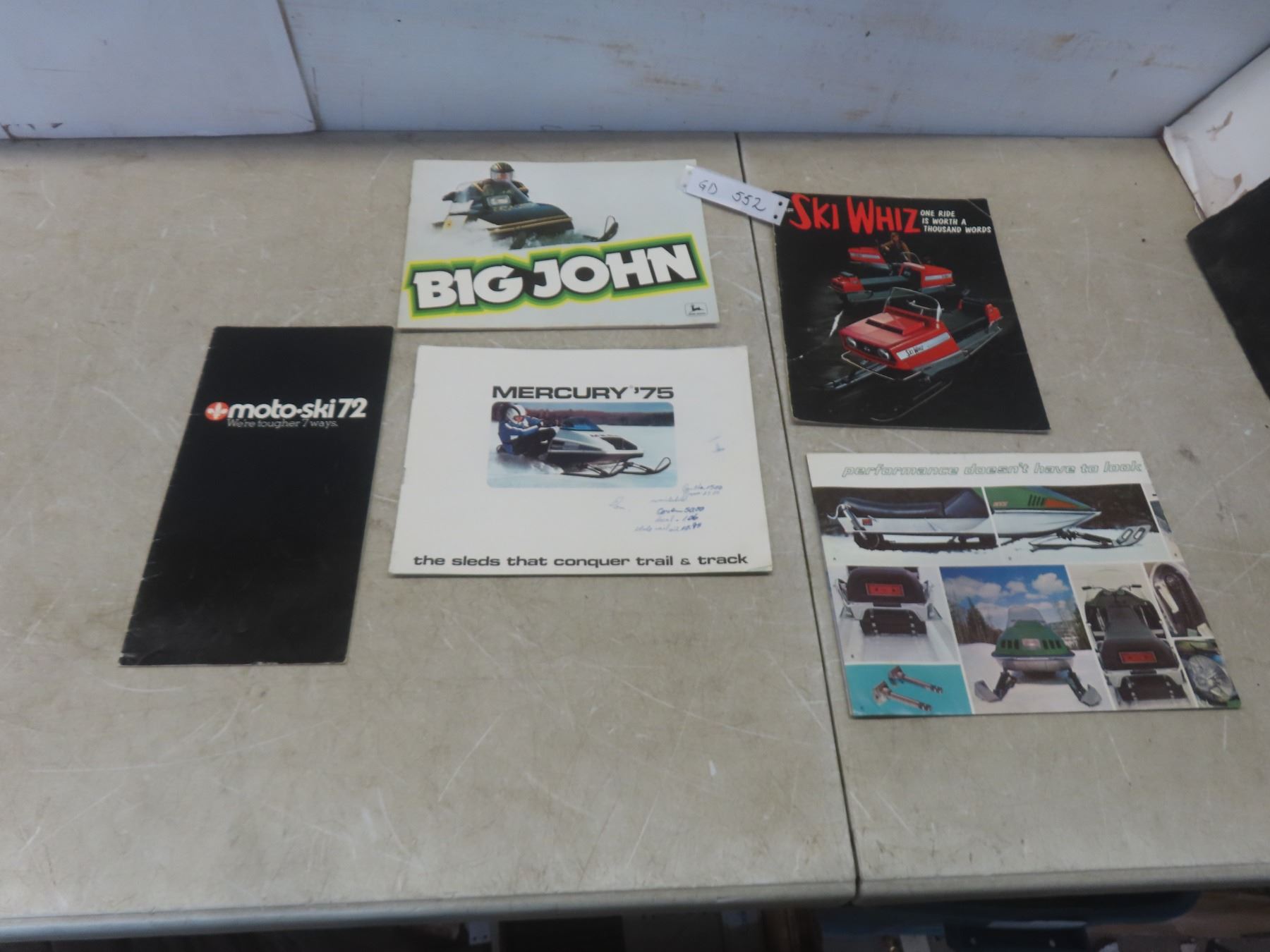 Lot 552 5 Snowmobile Brochures: Mercury 75, JD Big John, Ski-Whiz, Moto