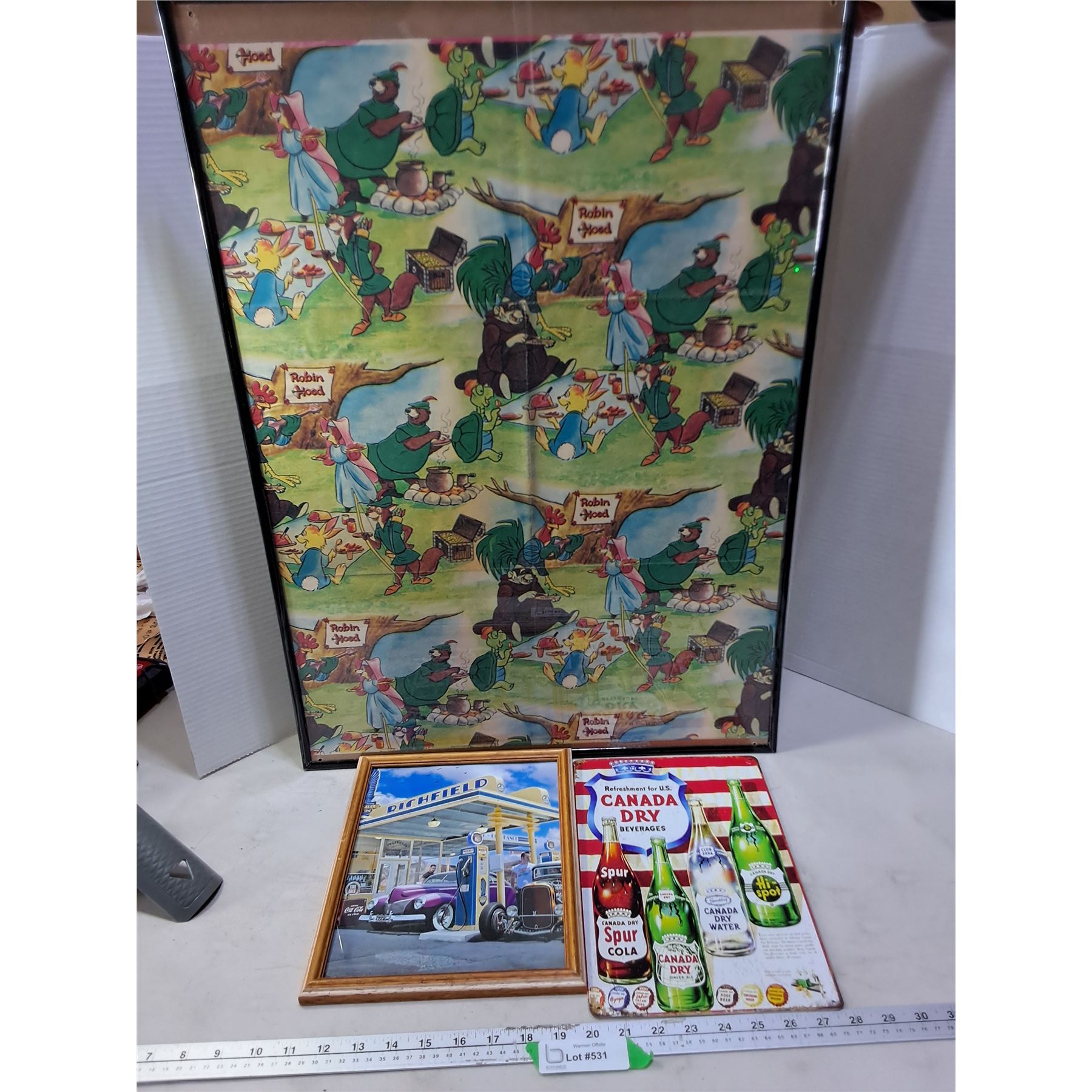 Lot 531 (3) Vintage/Retro Wall Decor (Robin Hood, Coca-Cola/Gas Station, Canada Dry) - Largest 20" x 28" -PU