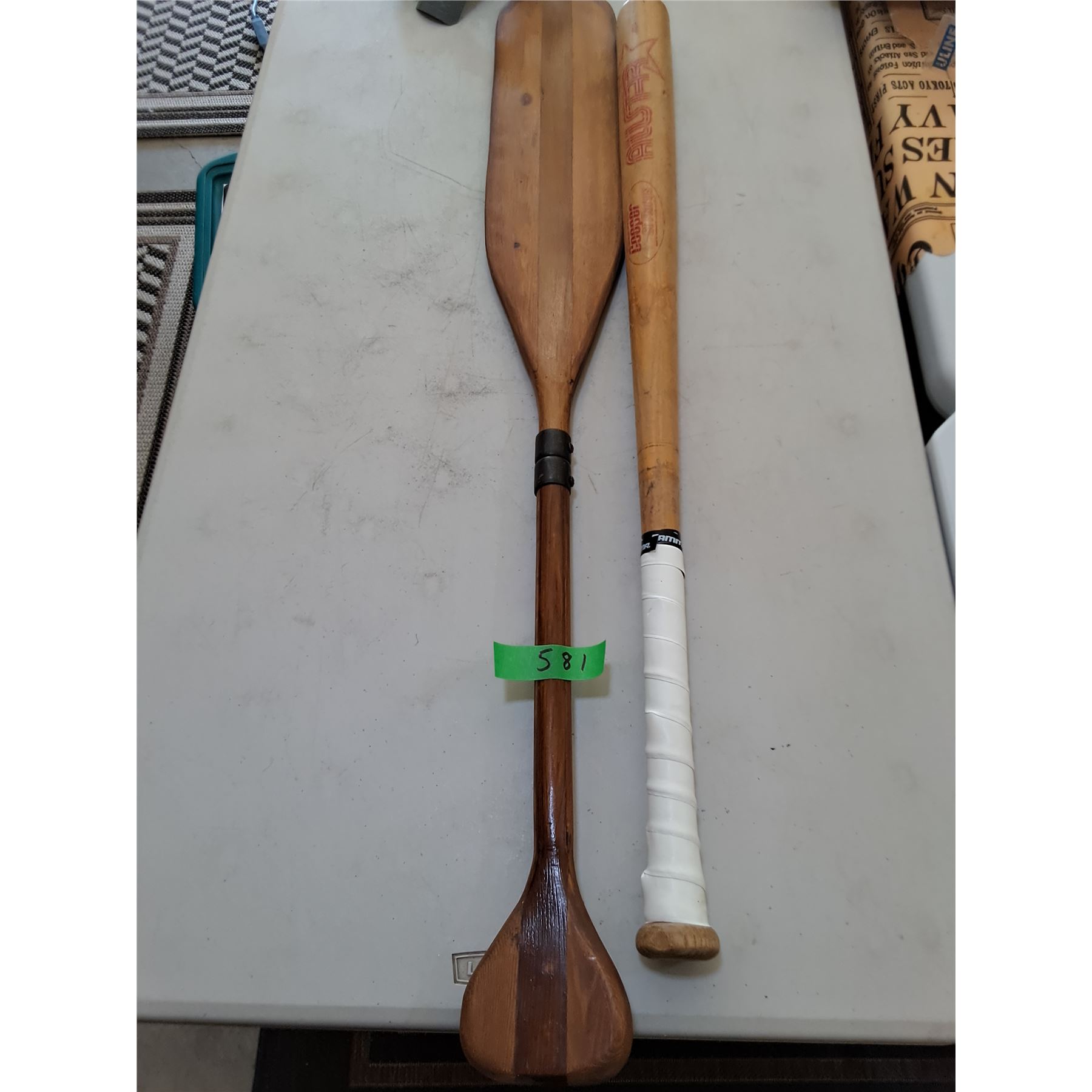 Lot 581 Wooden 39" Paddle, Cooper All-Star 33.5" Baseball Bat - CANNOT SHIP