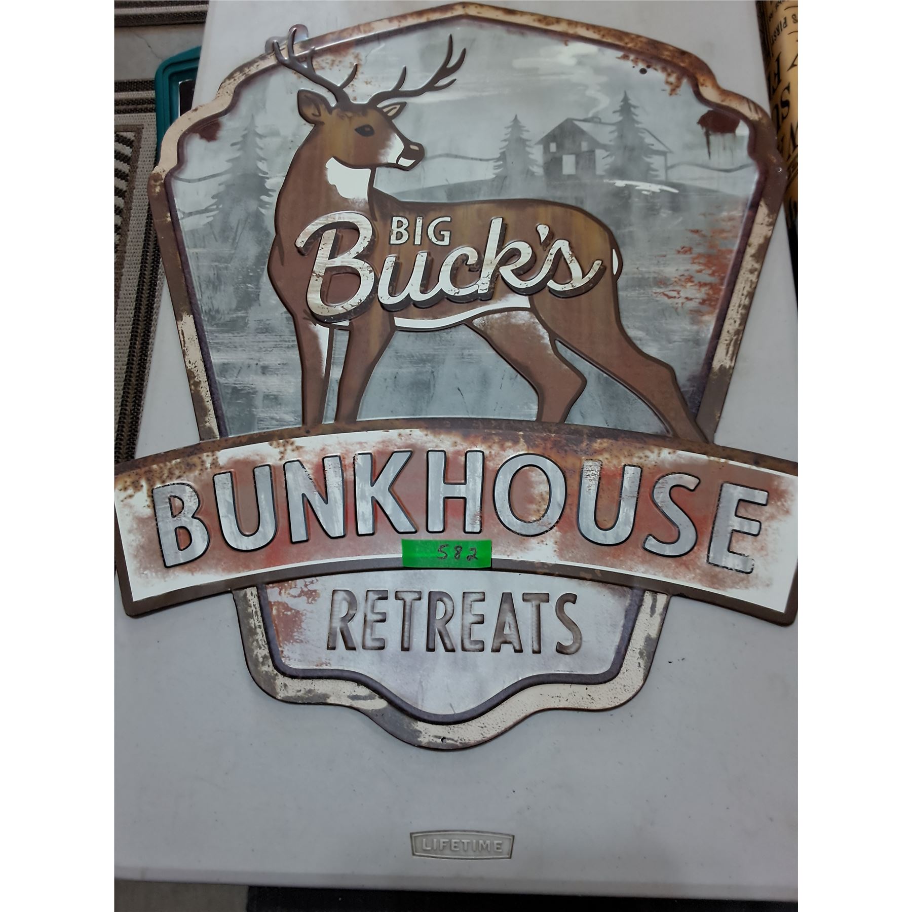Lot 582 Retro Metal "Big Buck's Bunk House Retreats" - 30" x 24" - PICK UP ONLY