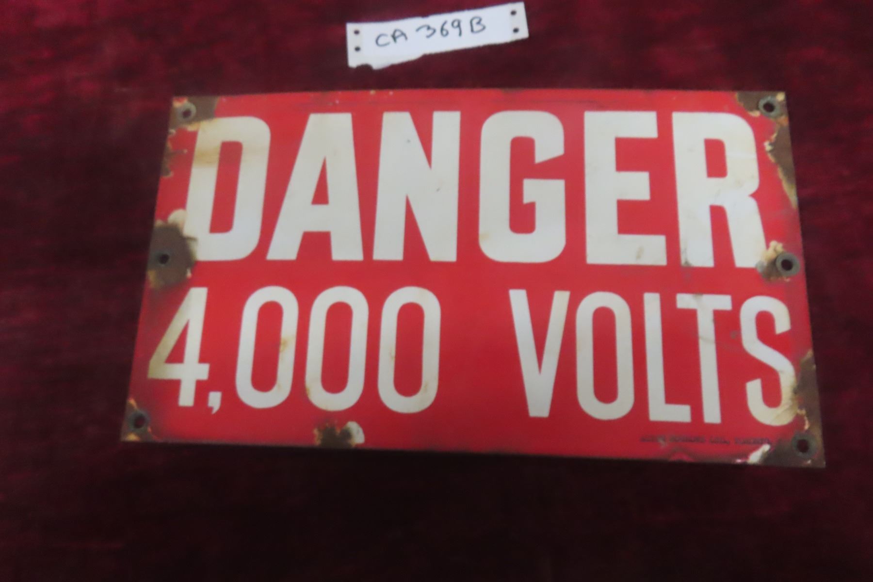 Lot 369B "Danger 4000 Volts" Porcelain Sign, 8" ? 14"