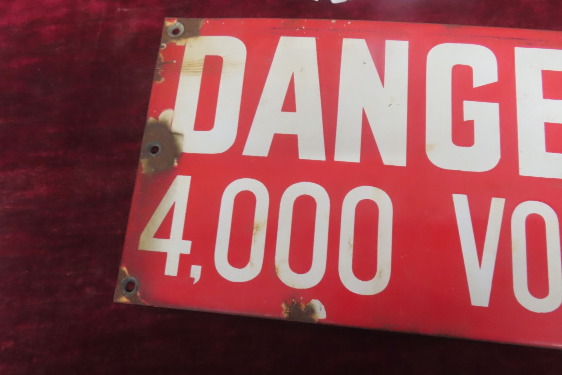 "Danger 4000 Volts" Porcelain Sign, 8" ? 14"