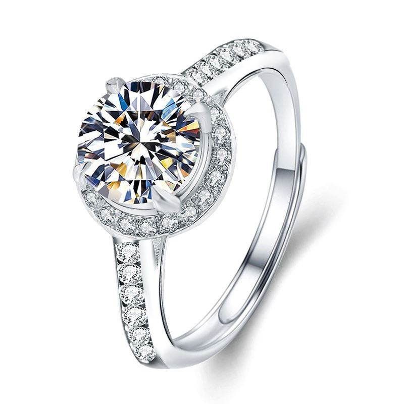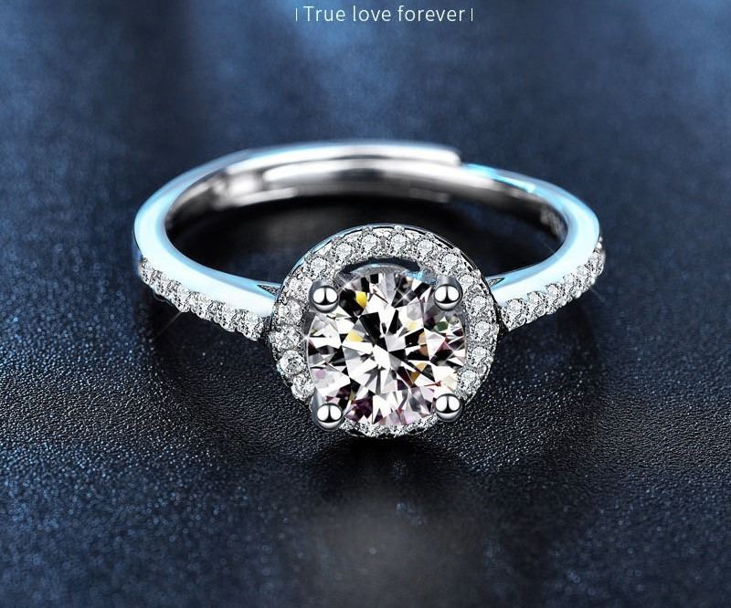 OPEN ADJUSTIBLE SIZE LUXURY RING WITH VVS D COLOR GRADE MOISSANITE STONE. COMES WITH ITS GRA CERTIFICATE. X08222