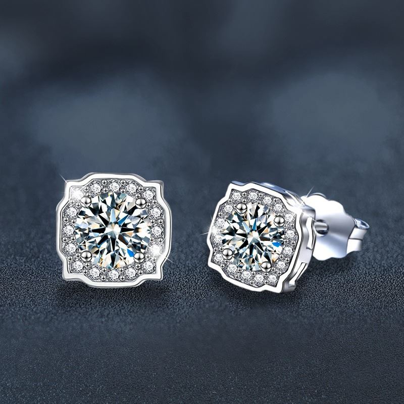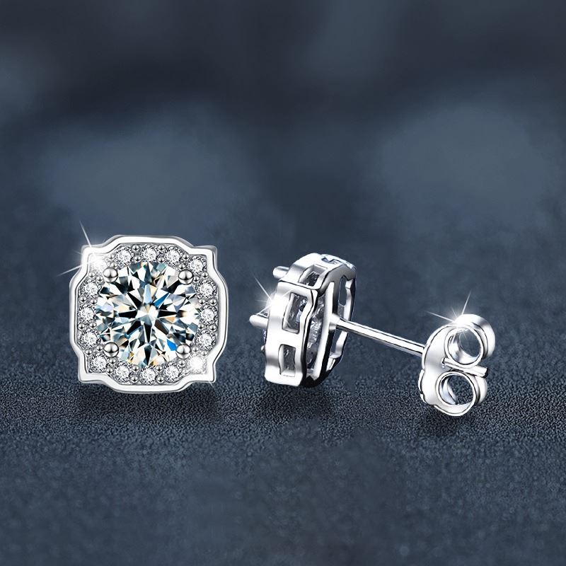 CUT 925S EARRINGS WITH VVS D COLOR GRADE MOISSANITE CENTER STONE. COMES WITH ITS GRA CERTIFICATE. XEZ057