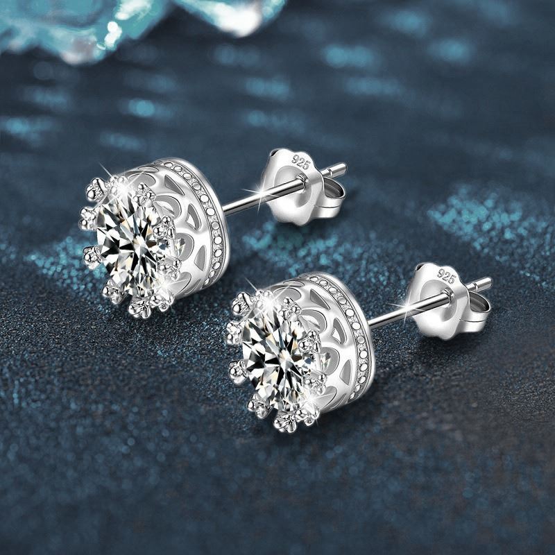 CUT 925S EARRINGS WITH VVS D COLOR GRADE MOISSANITE CENTER STONE. COMES WITH ITS GRA CERTIFICATE. XEZ053