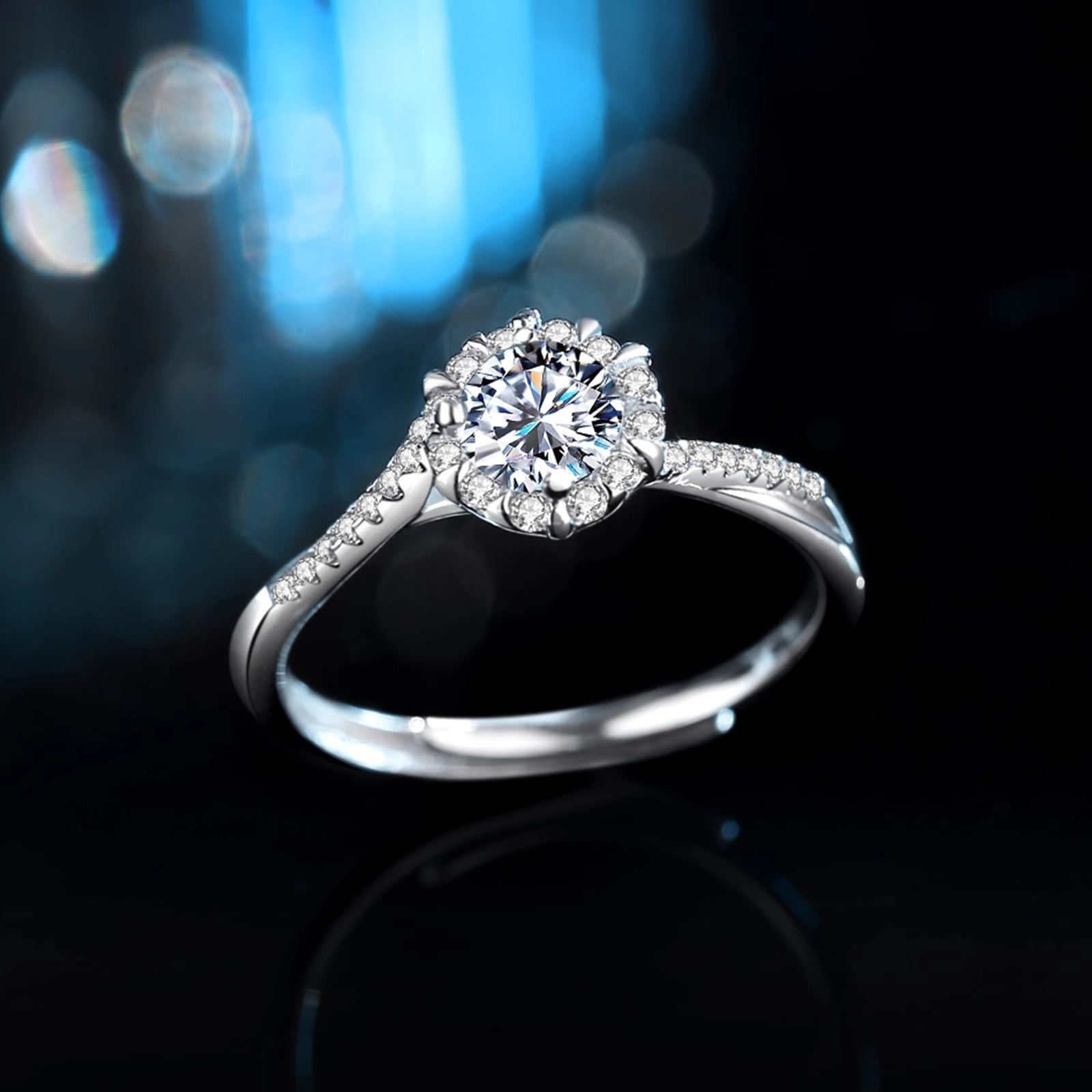 OPEN ADJUSTIBLE SIZE LUXURY RING WITH VVS D COLOR GRADE MOISSANITE STONE. COMES WITH ITS GRA CERTIFICATE. XJZ077