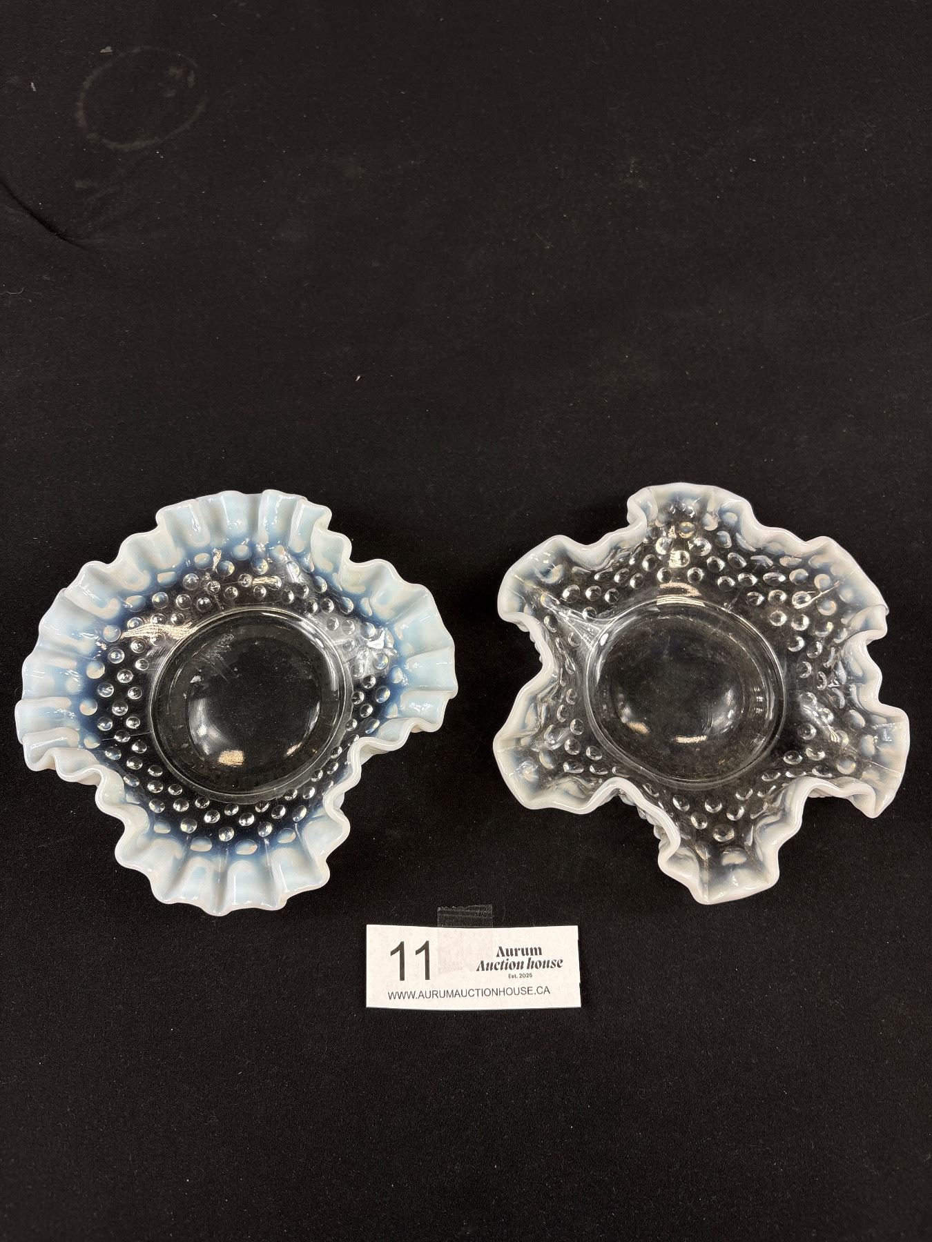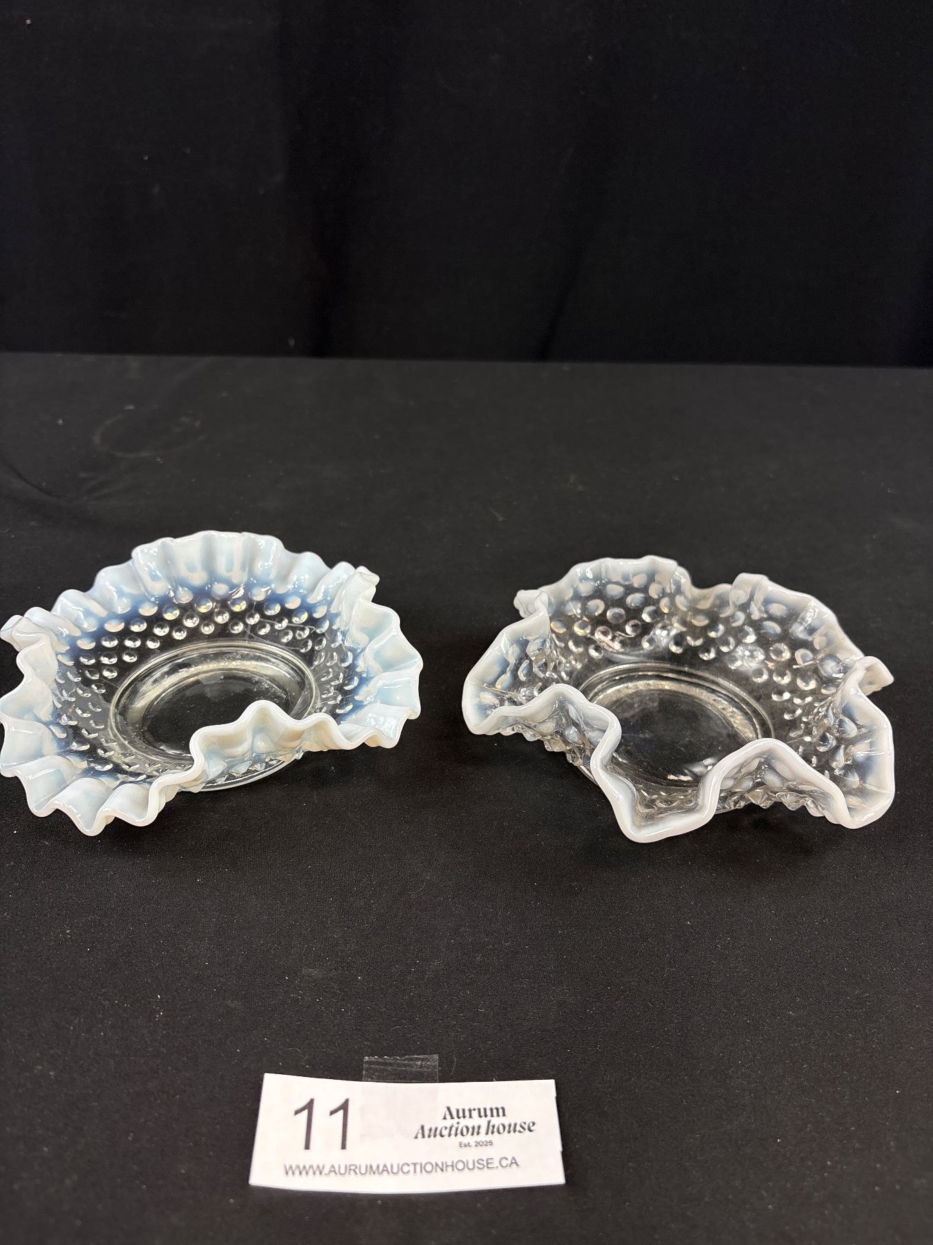 Lot 11 2 Vintage Fenton French Opalescent Hobnail Ruffled Edge Bon Bon Dishes