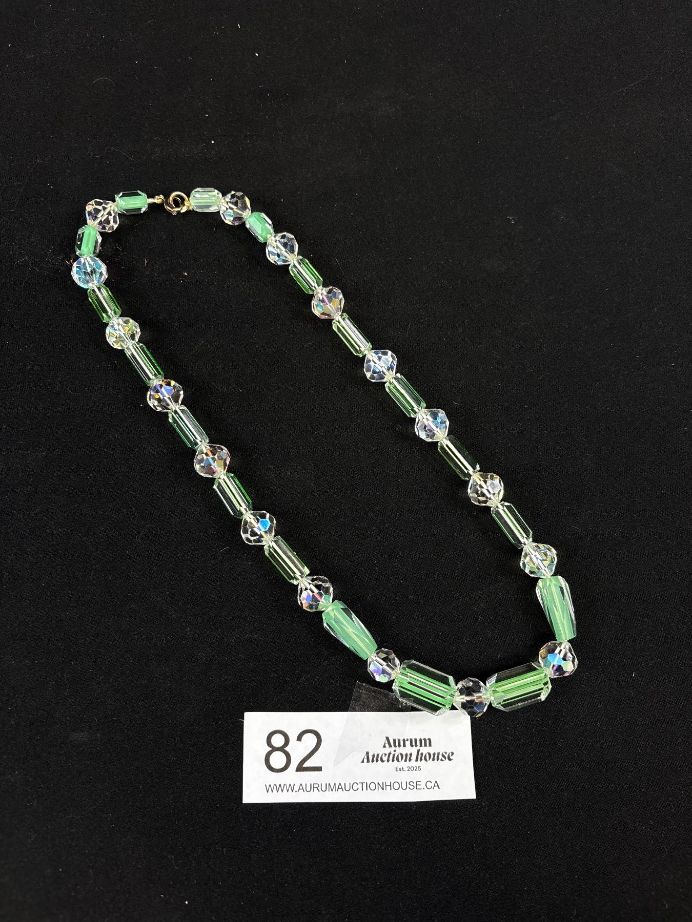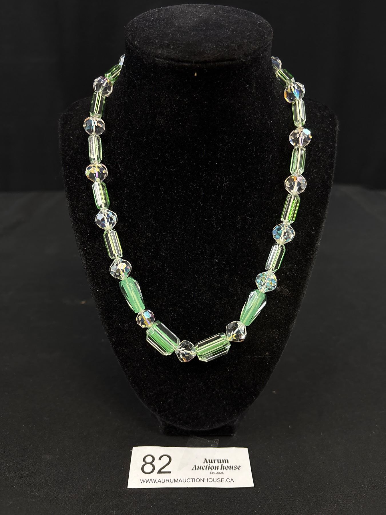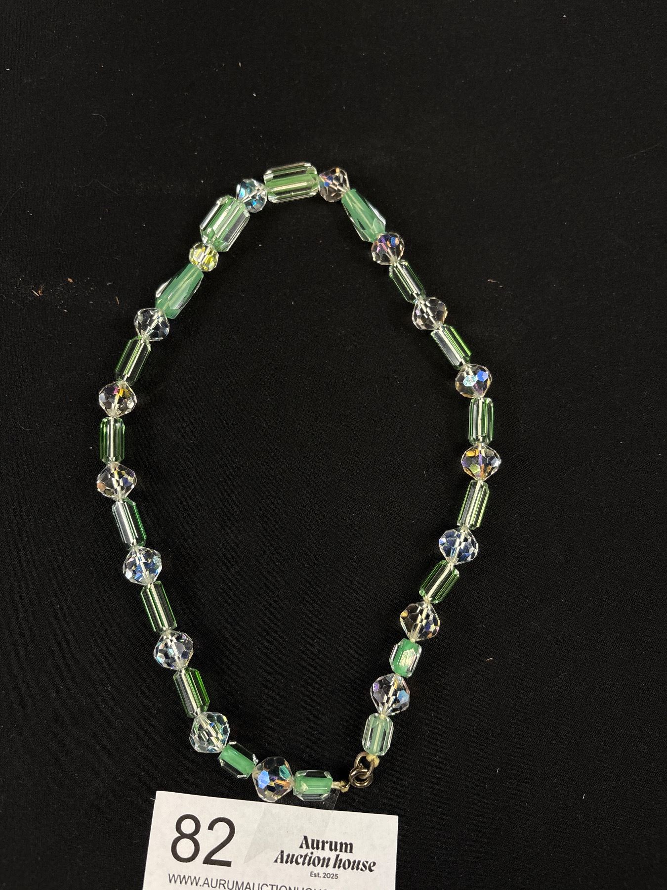 Lot 82 Vintage Uranium and Aurora Borealis Bead Necklace 18" Long
