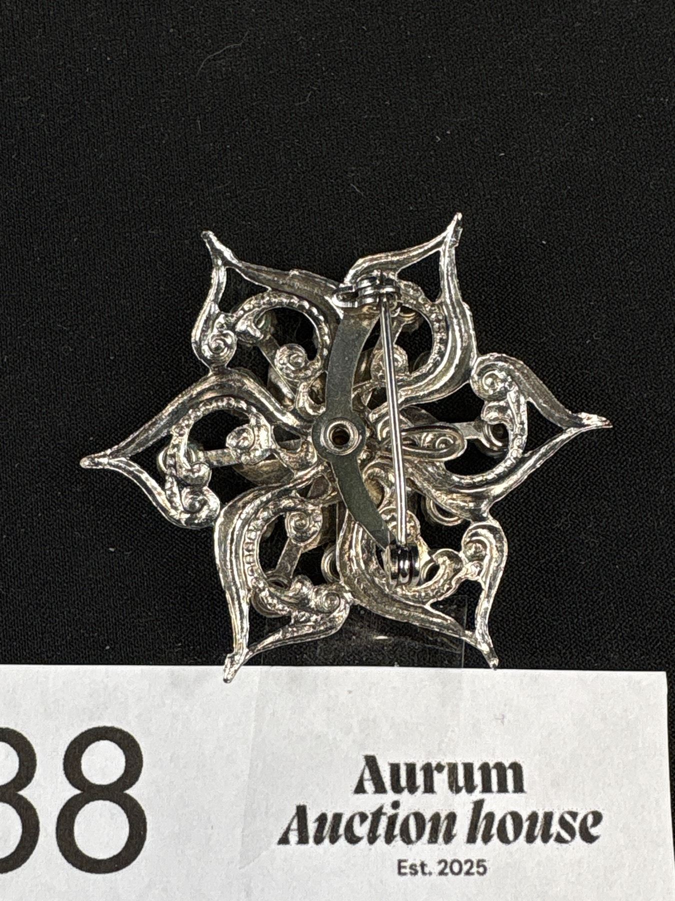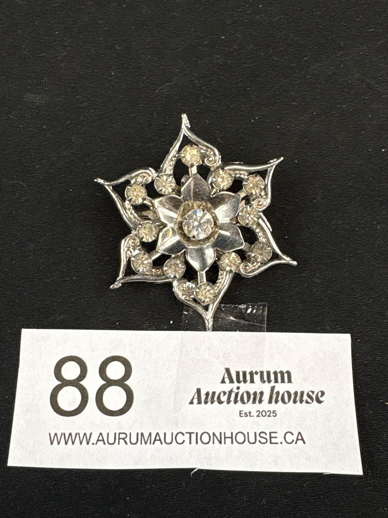 Lot 88 1960s-70s Pretty Vintage Rhinestone Flower Brooch Not Marked