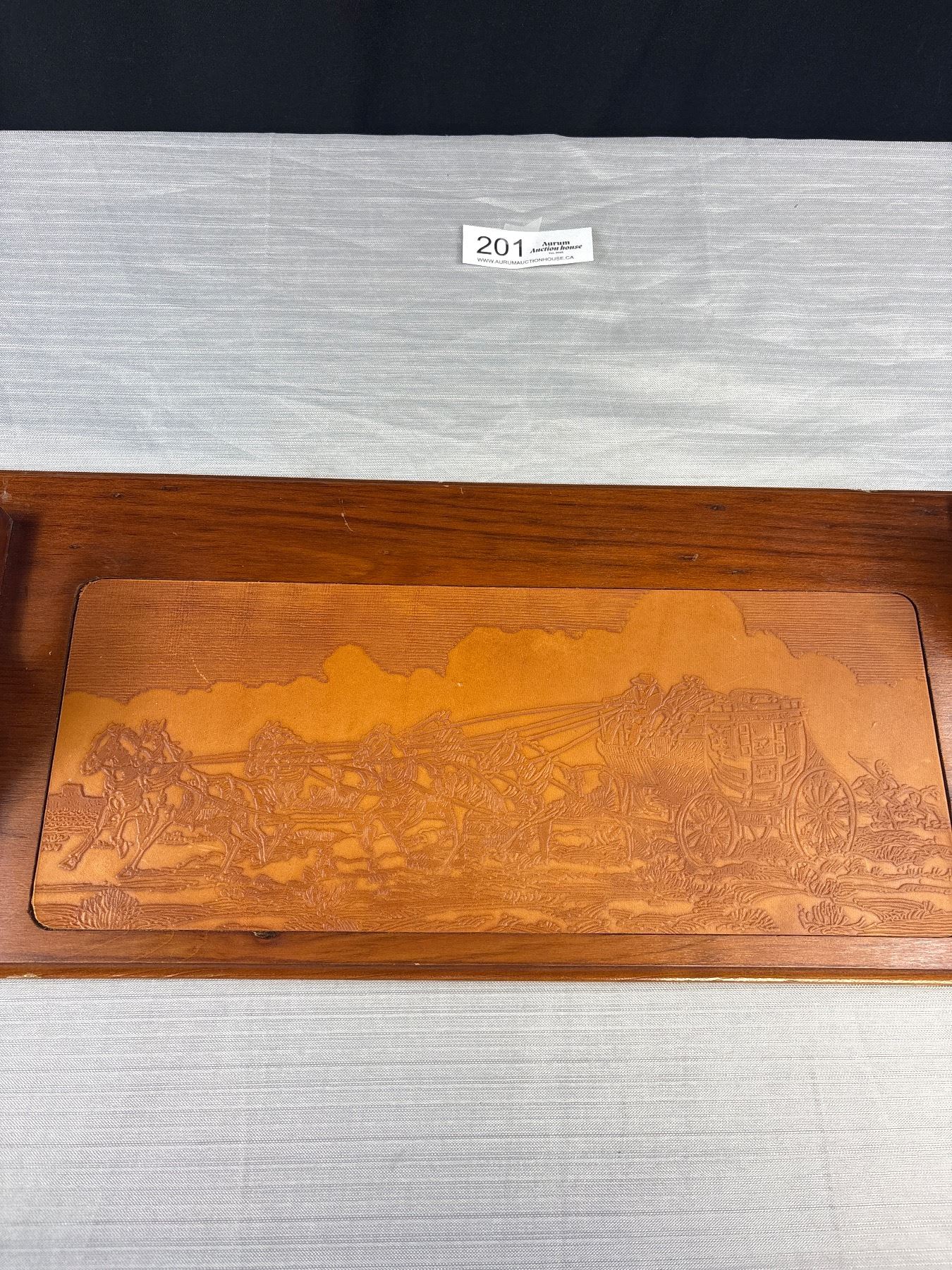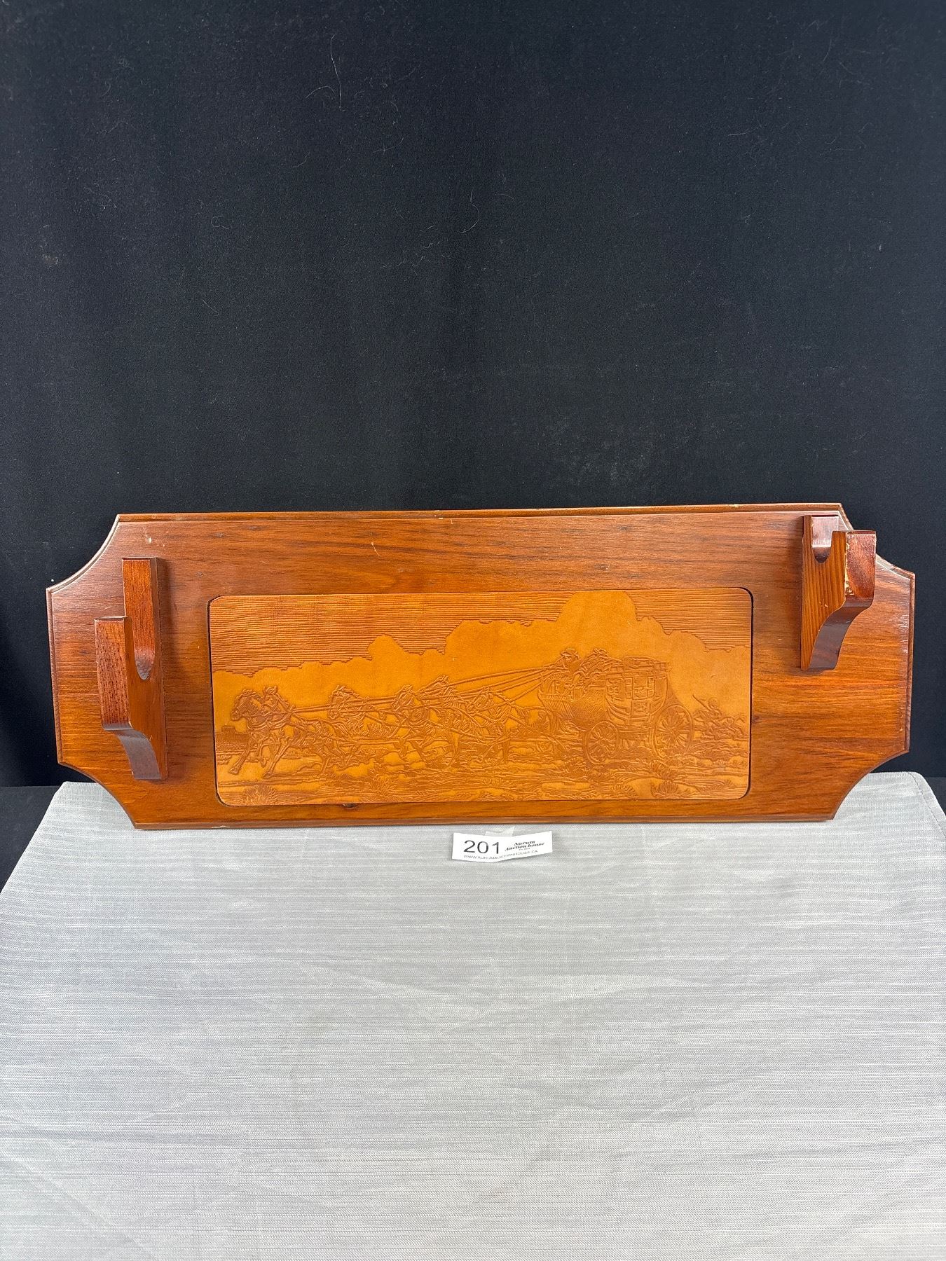 Lot 201 Very Nice Winchester Wall Rifle Rack with Leather Engraved Artwork Stage Coach 24" Wide