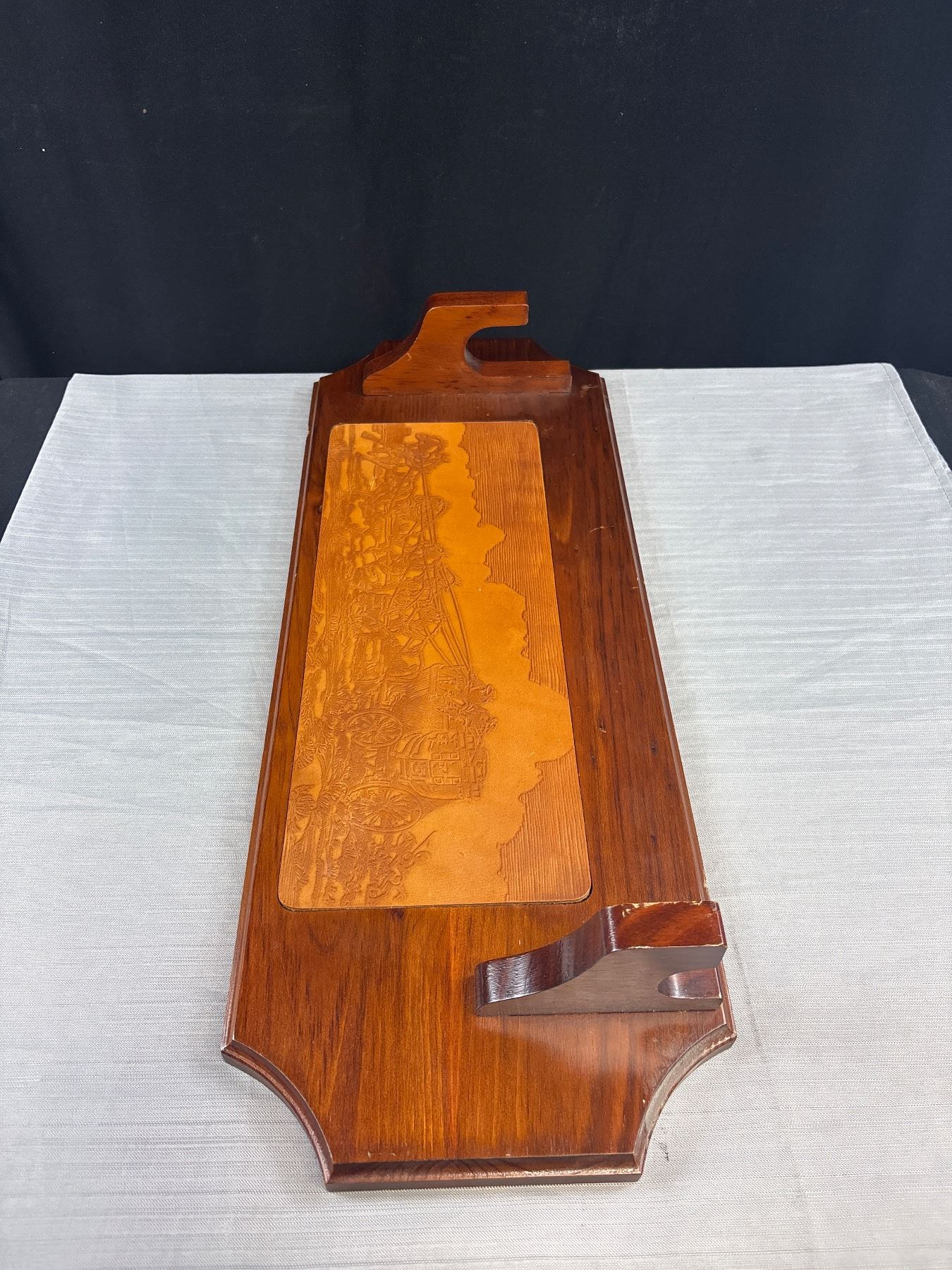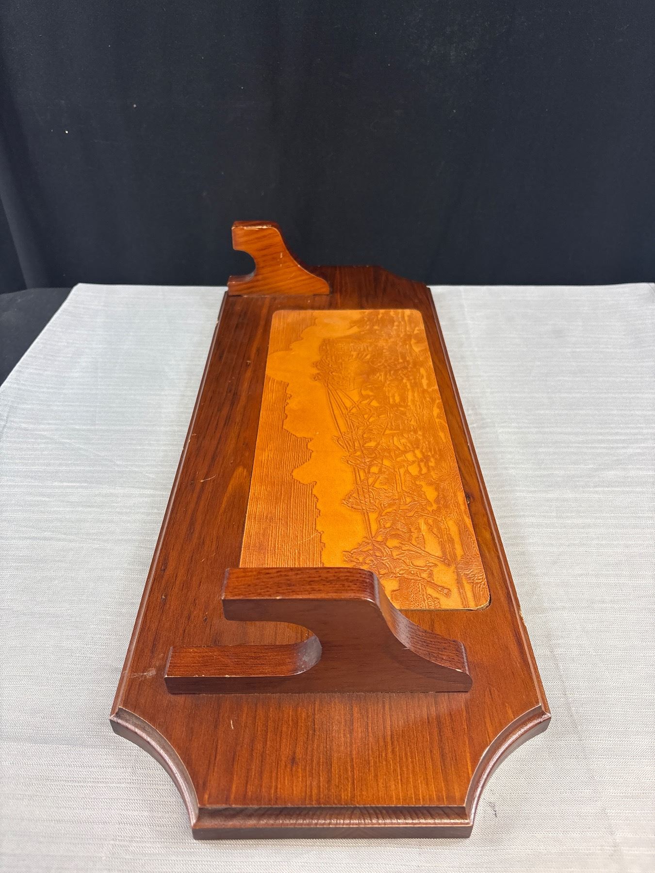 Very Nice Winchester Wall Rifle Rack with Leather Engraved Artwork Stage Coach 24" Wide