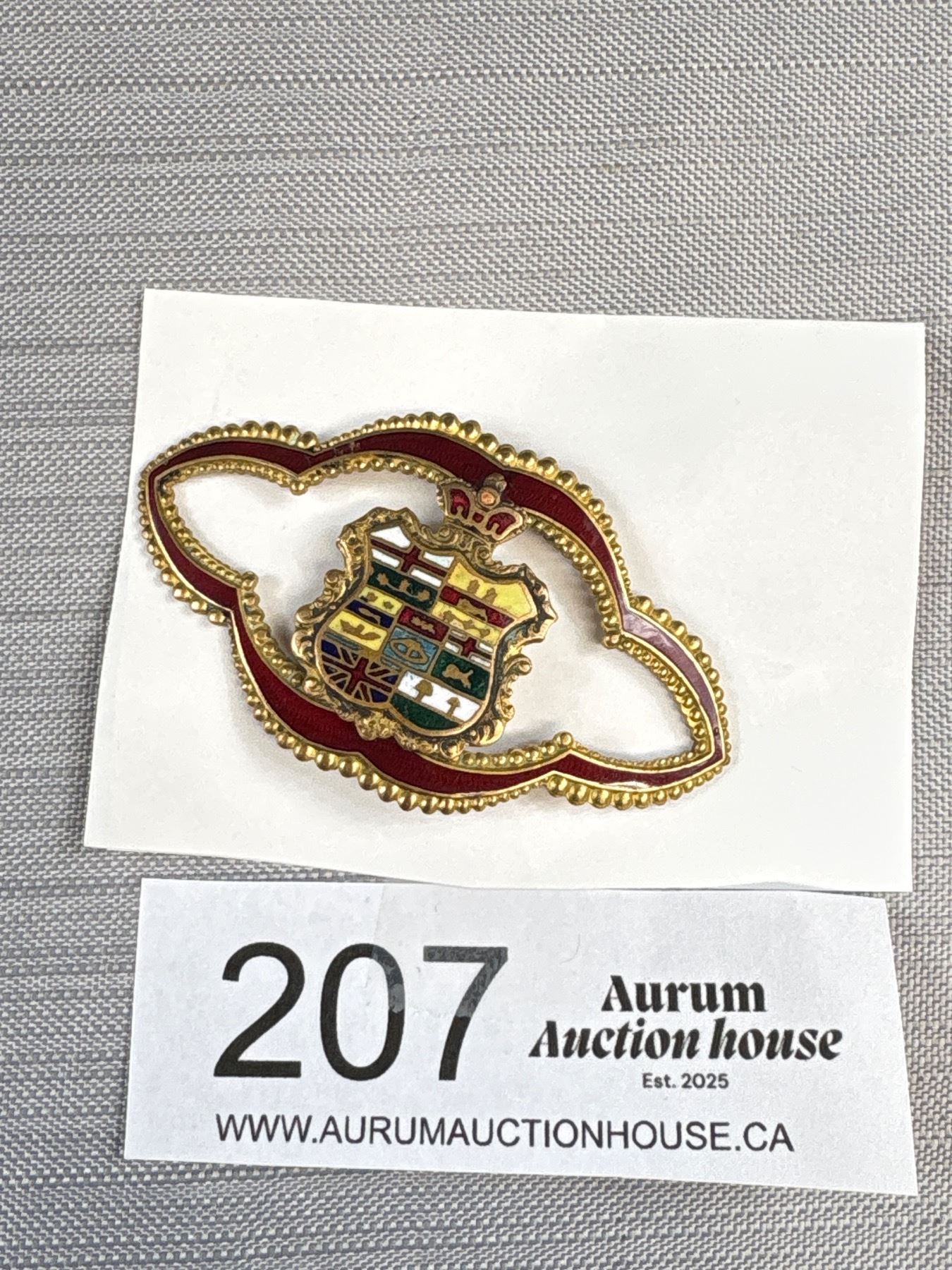 Lot 207 Very Nice 2 1/2" Wide Enamel Canada Brooch 1910-20 Great Detail