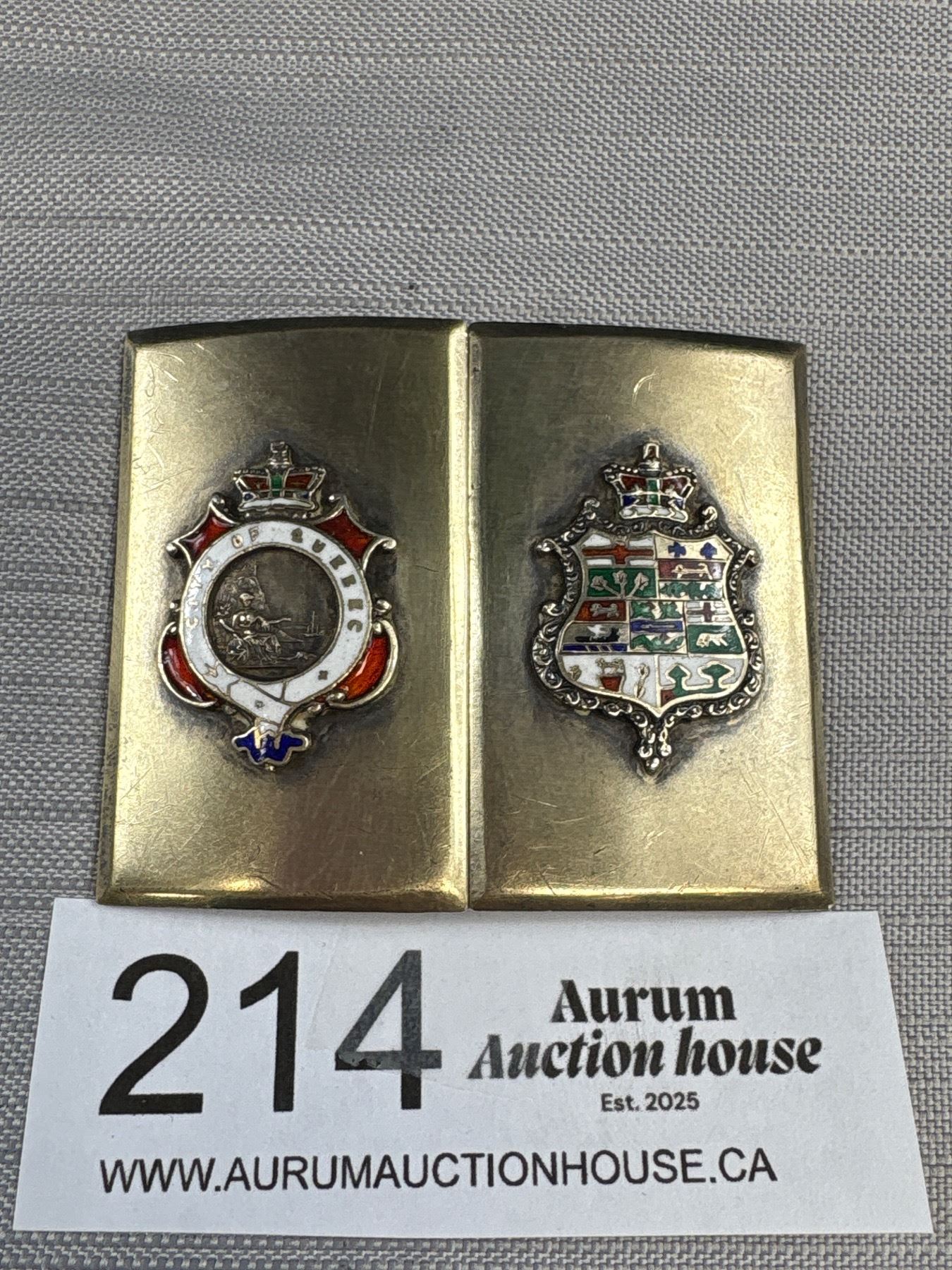 Lot 214 Antique Sterling Silver Canadian Belt Buckle Quebec Emblem Very Nice