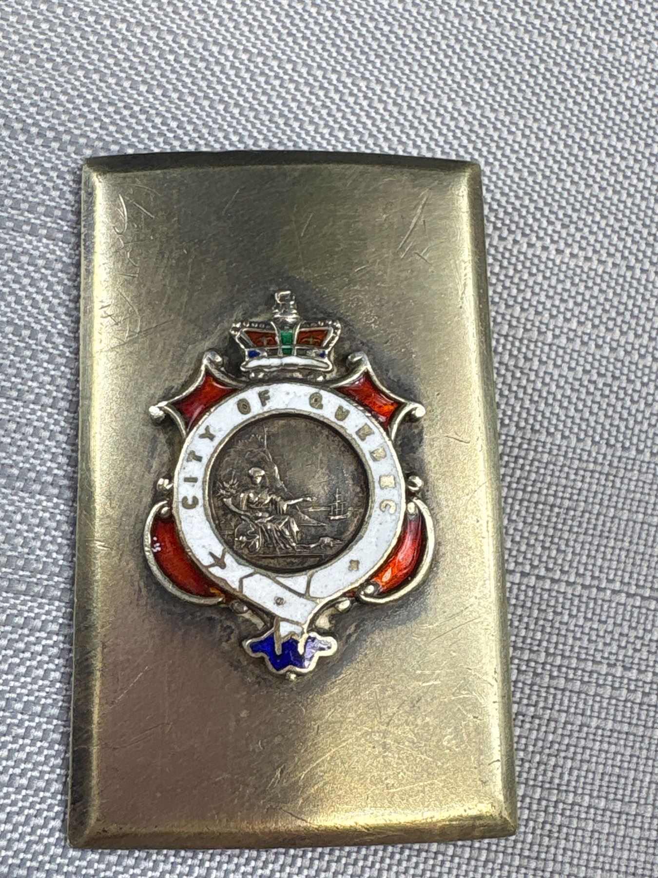 Antique Sterling Silver Canadian Belt Buckle Quebec Emblem Very Nice