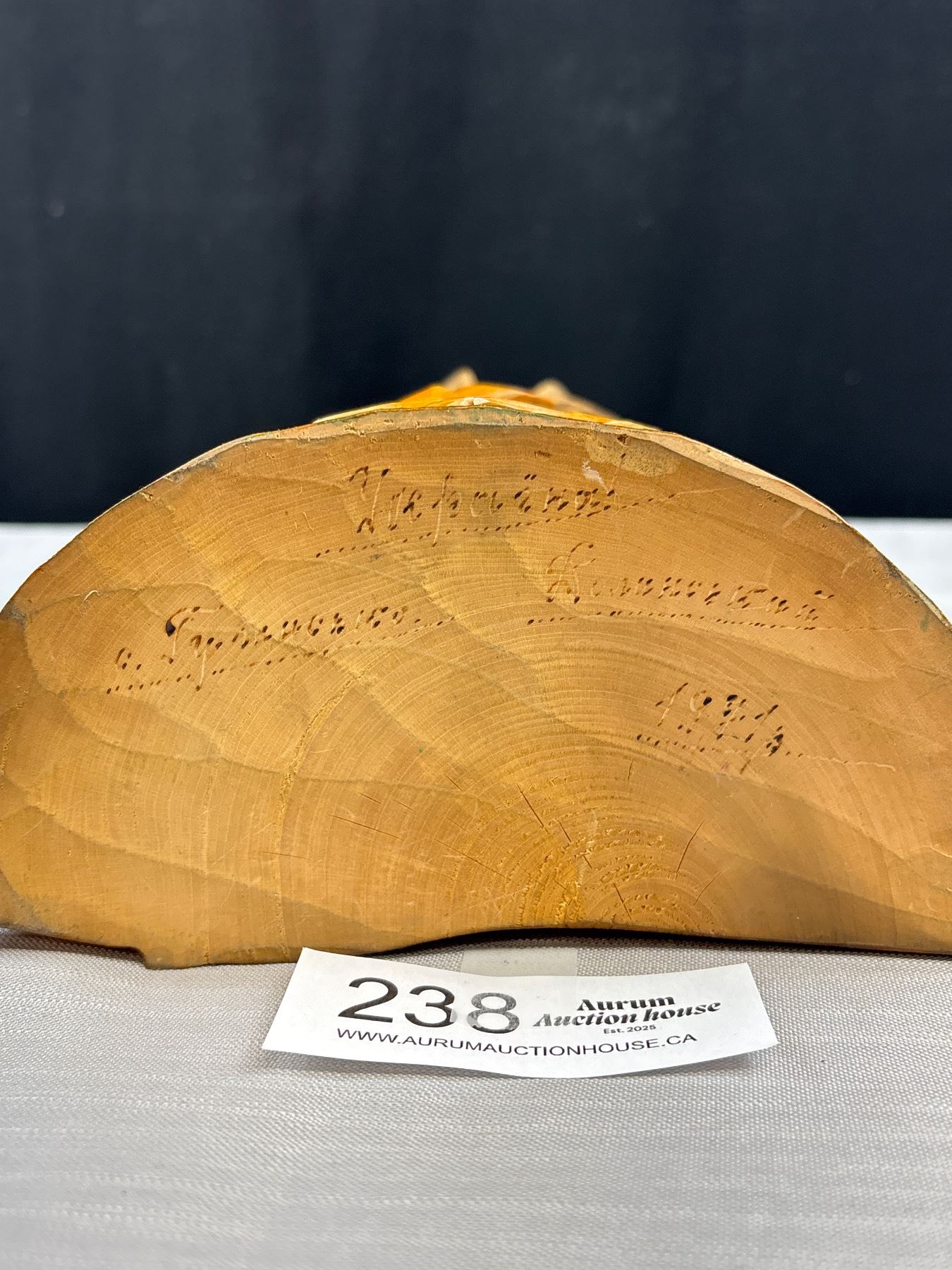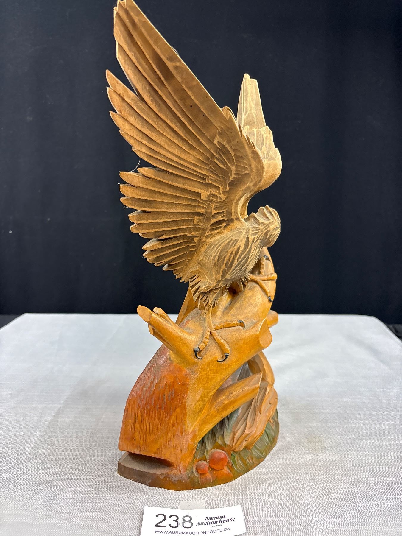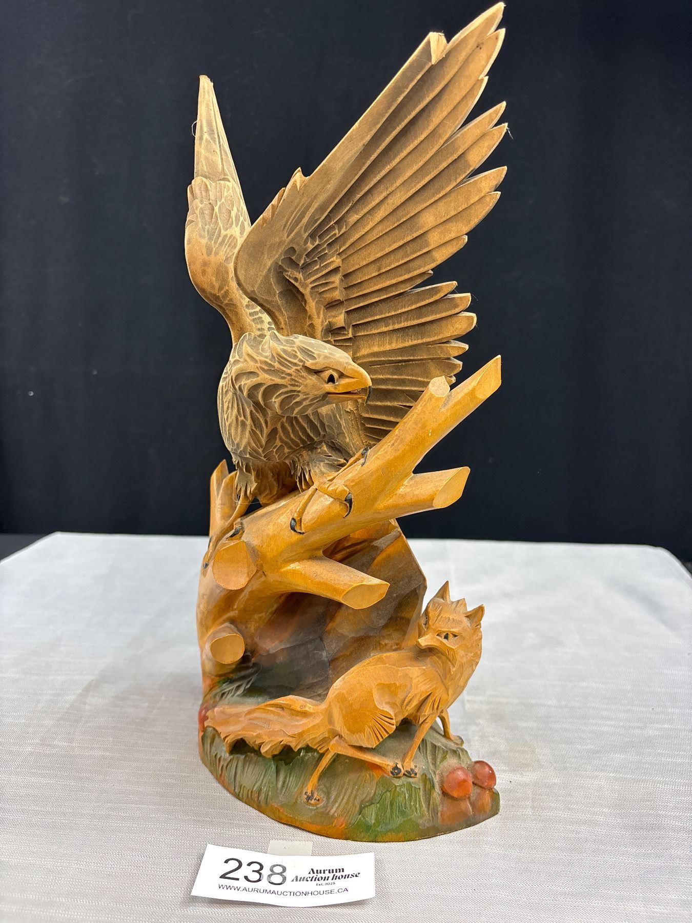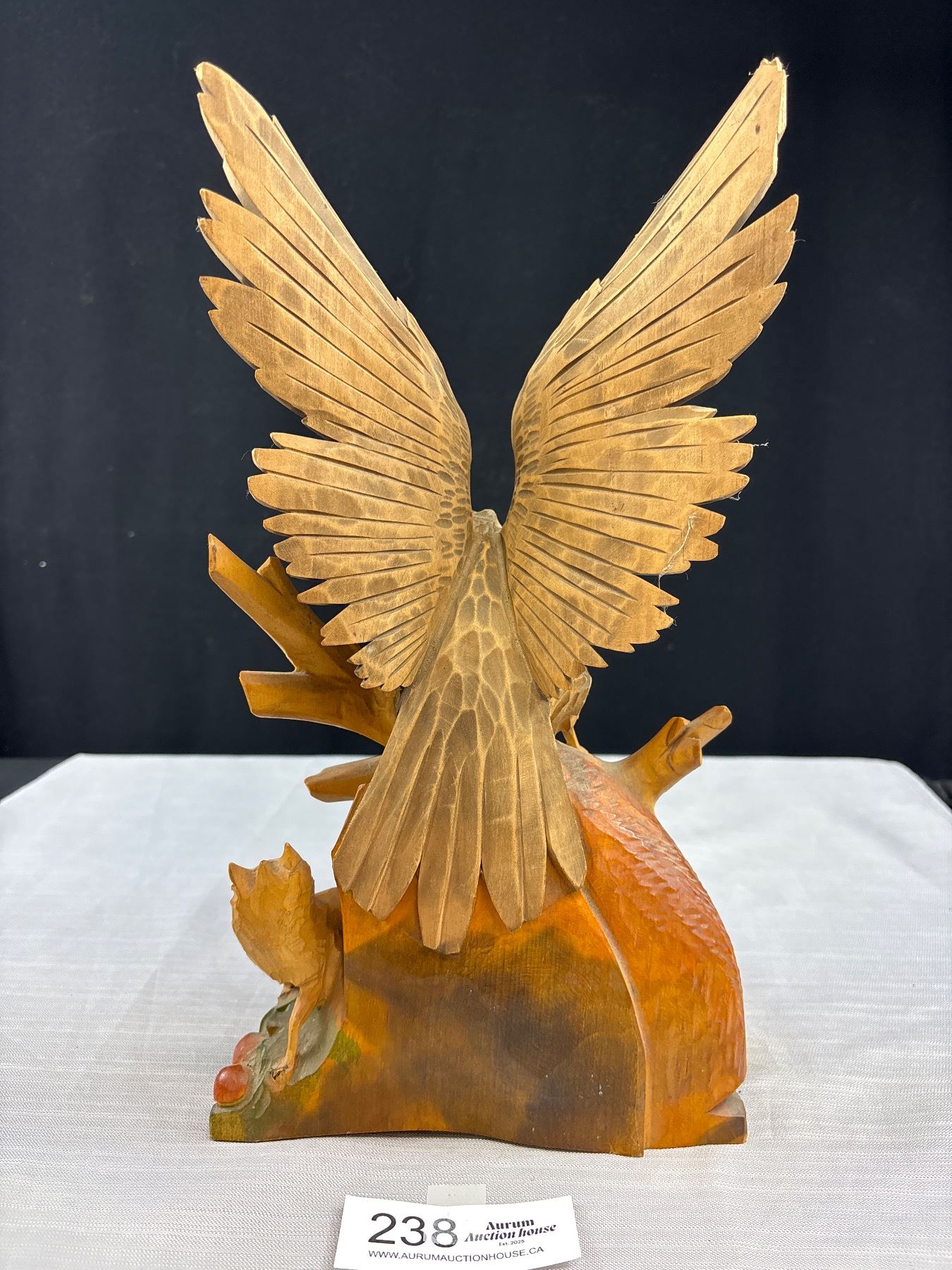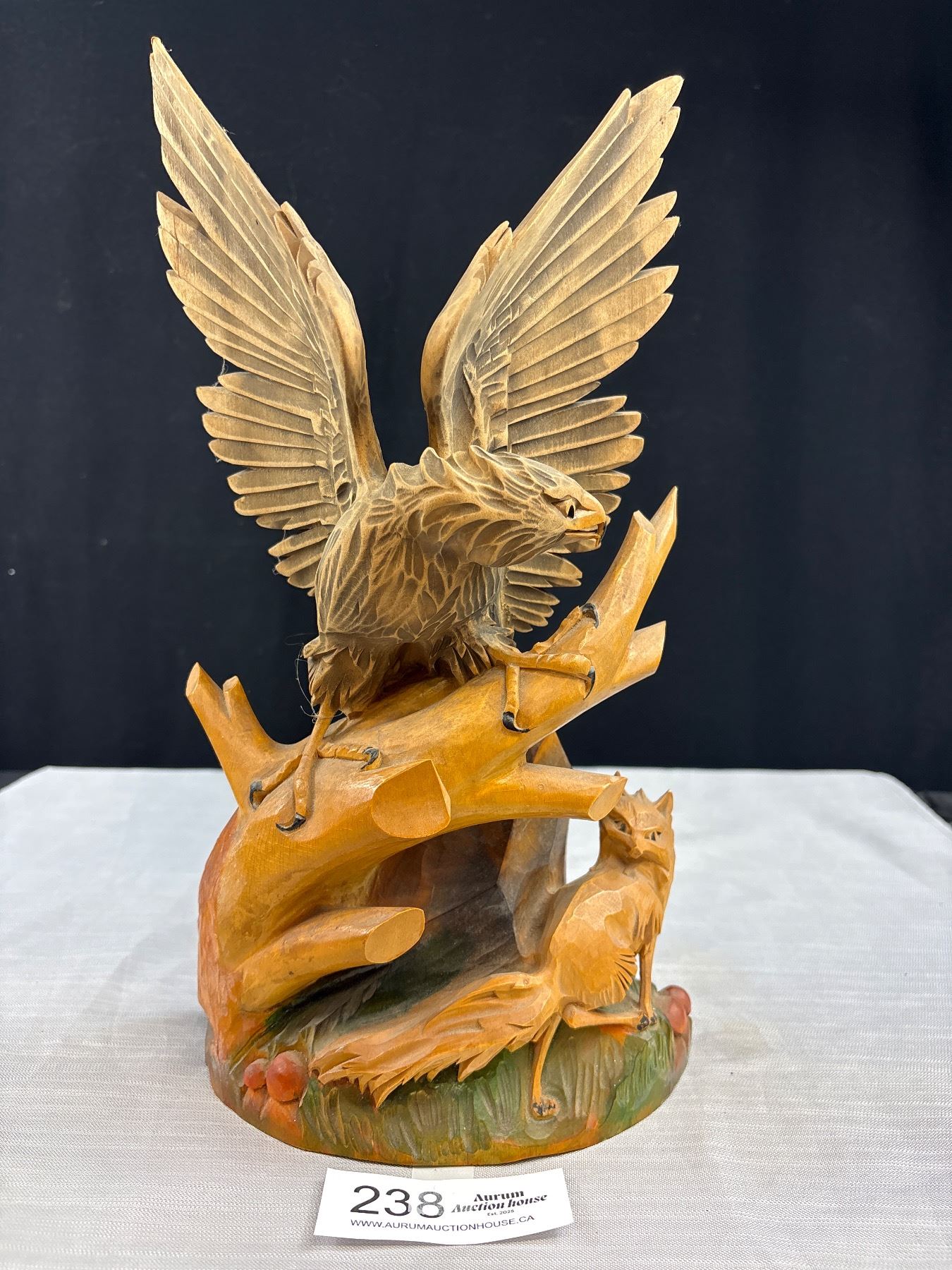 Lot 238 Very Nice Hand Carved 14" Tall Eagle and Fox Signed on Bottom
