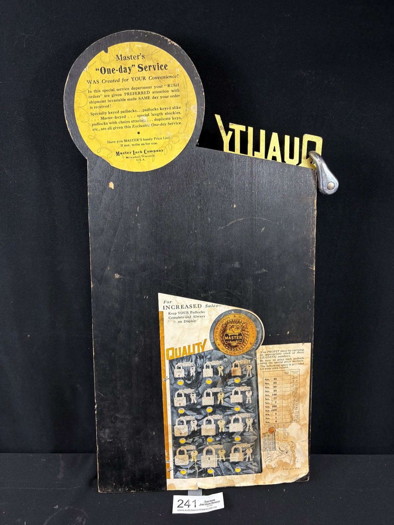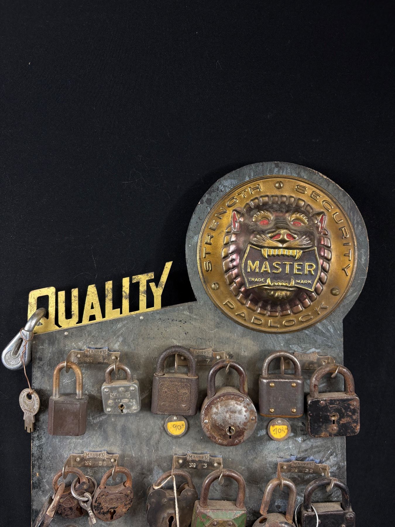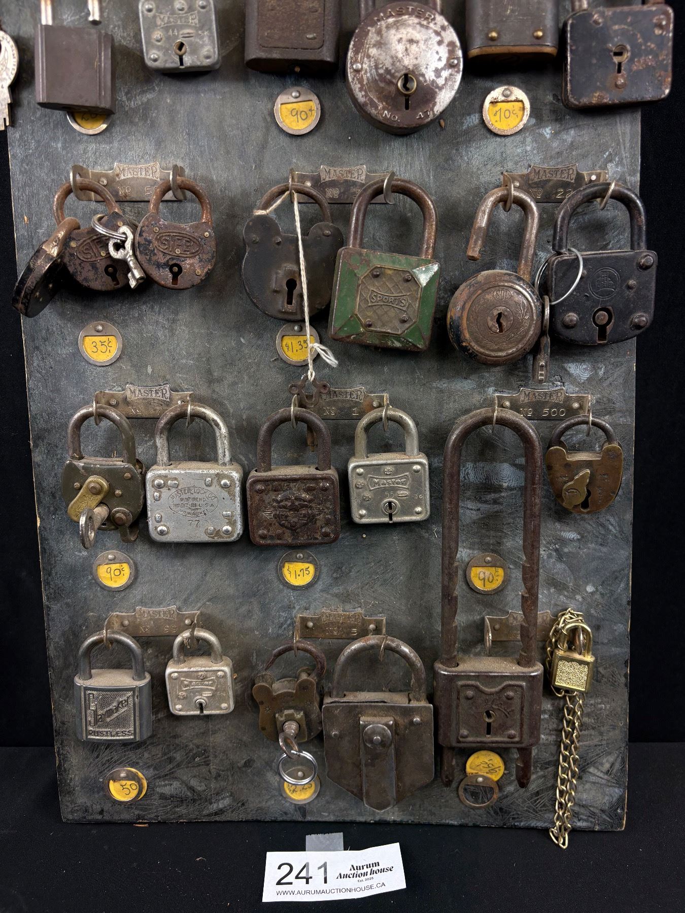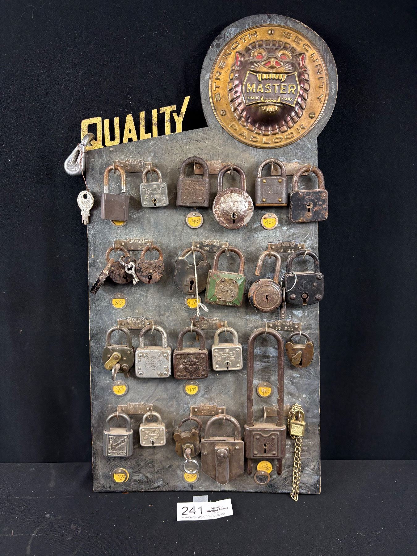 Lot 241 Very Cool Vintage Master Lock Padlock Display 23" Tall Full of Locks Some with Keys