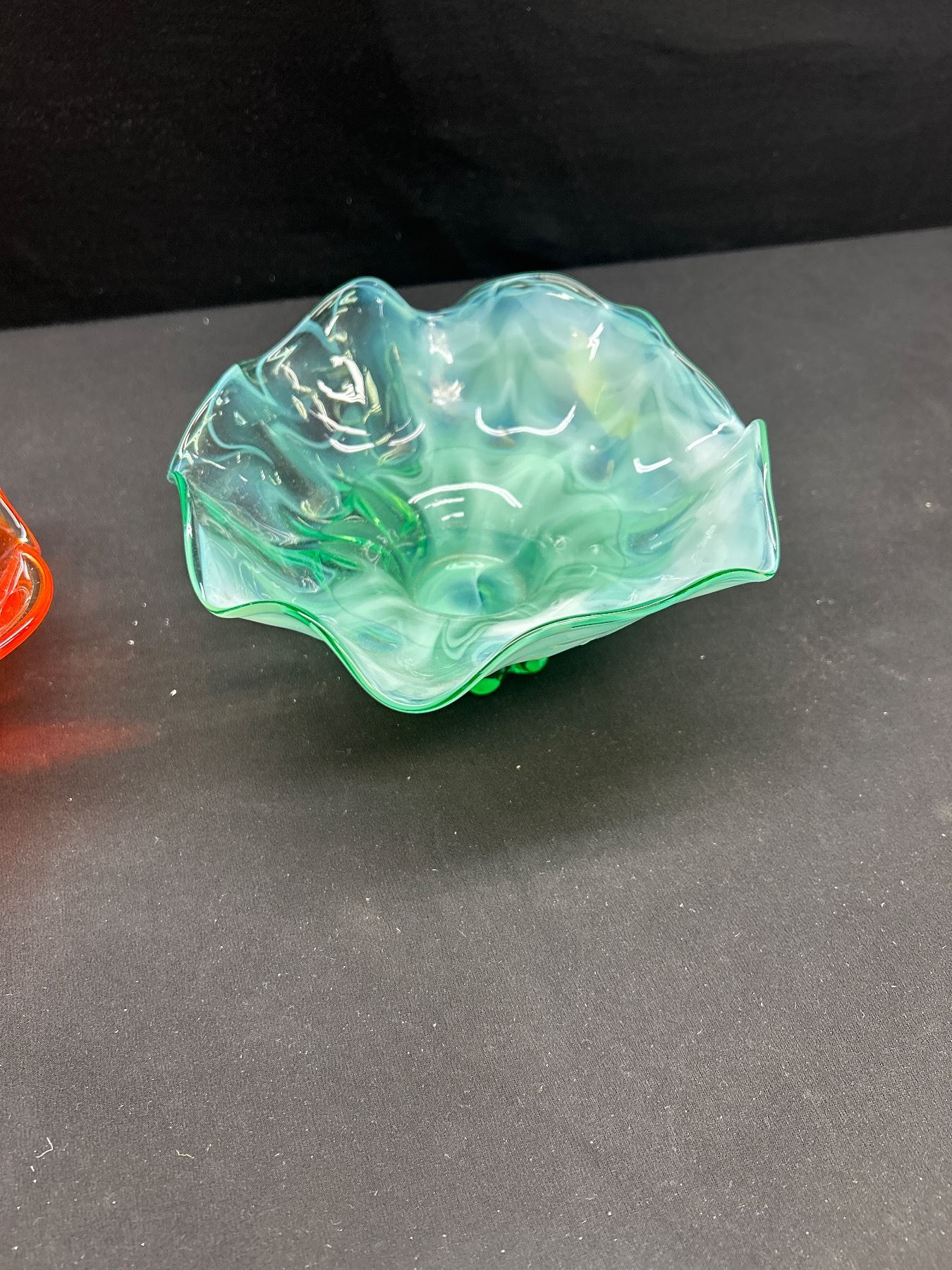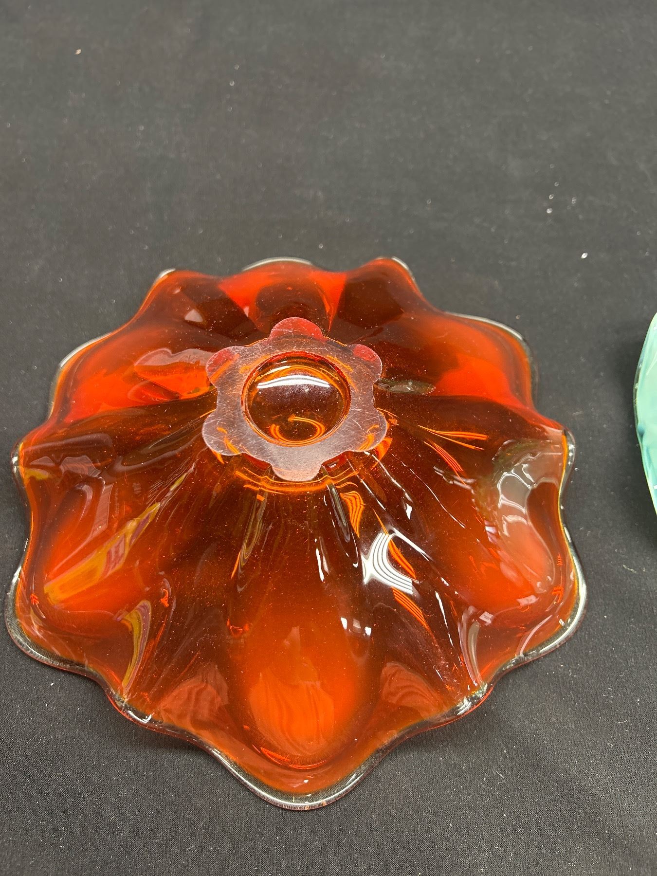 2 Very Nice Mid Century Glass Ruffle Edge Bowls Largest 9" Dia