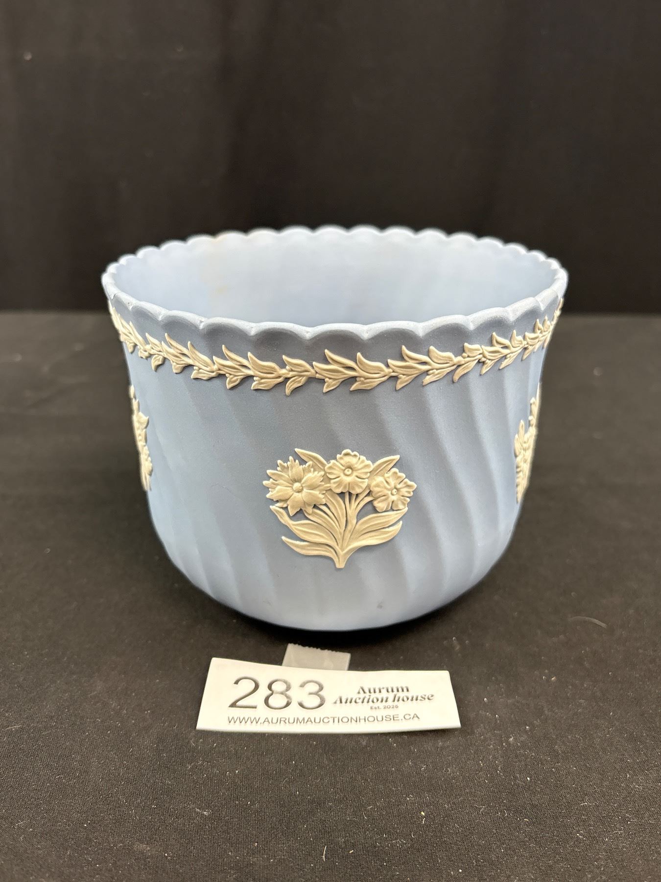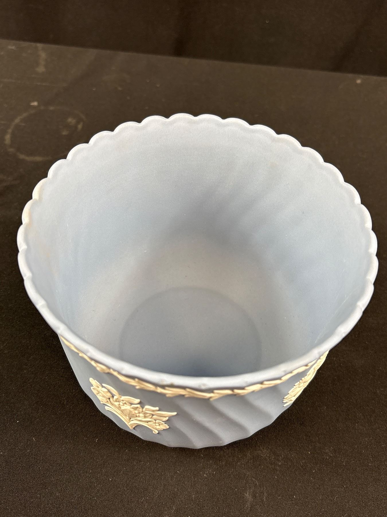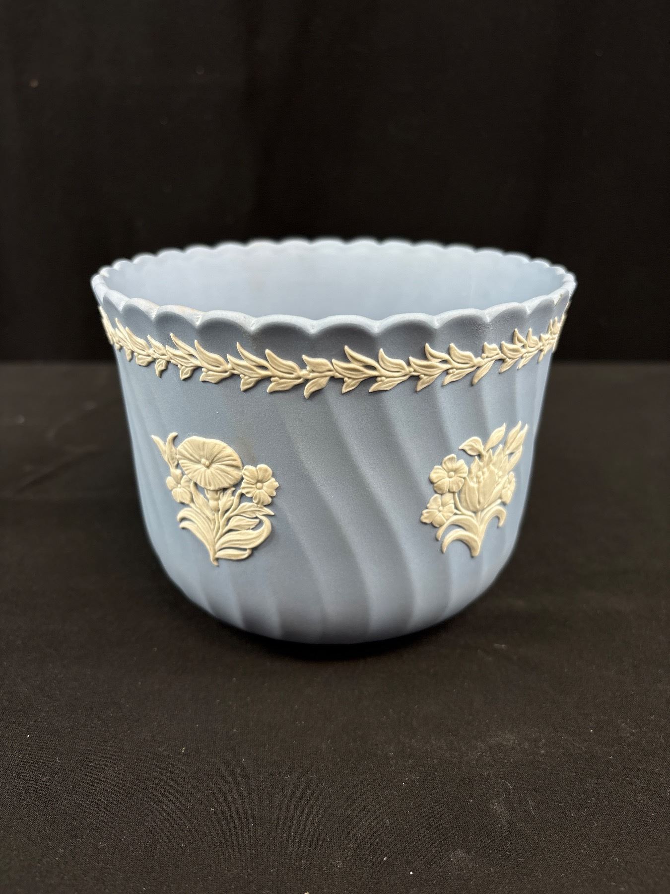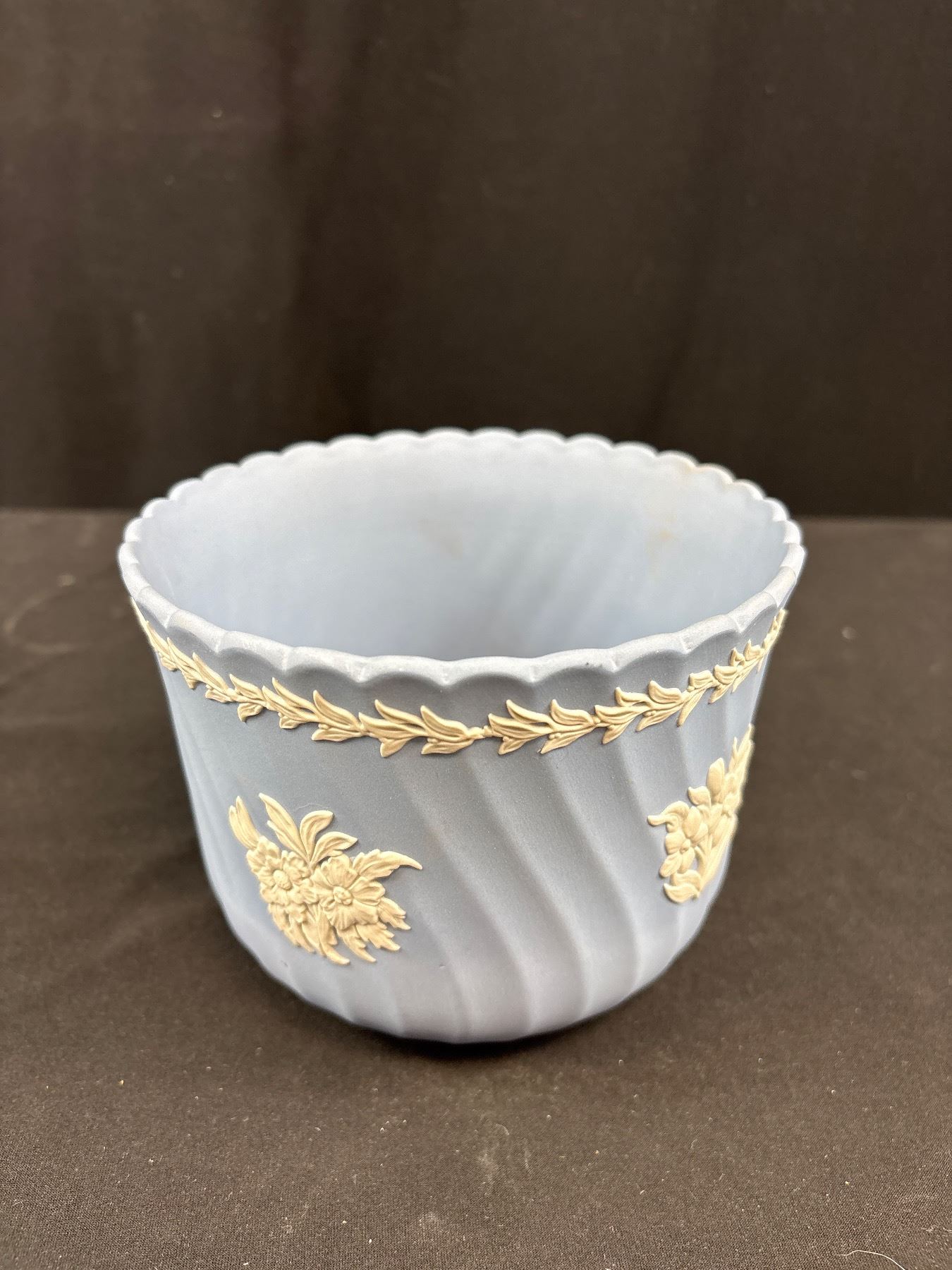 Lot 283 Vintage Morning Glory Flower Spiral Planter Pot Wedgewood Jasperware 5" Tall