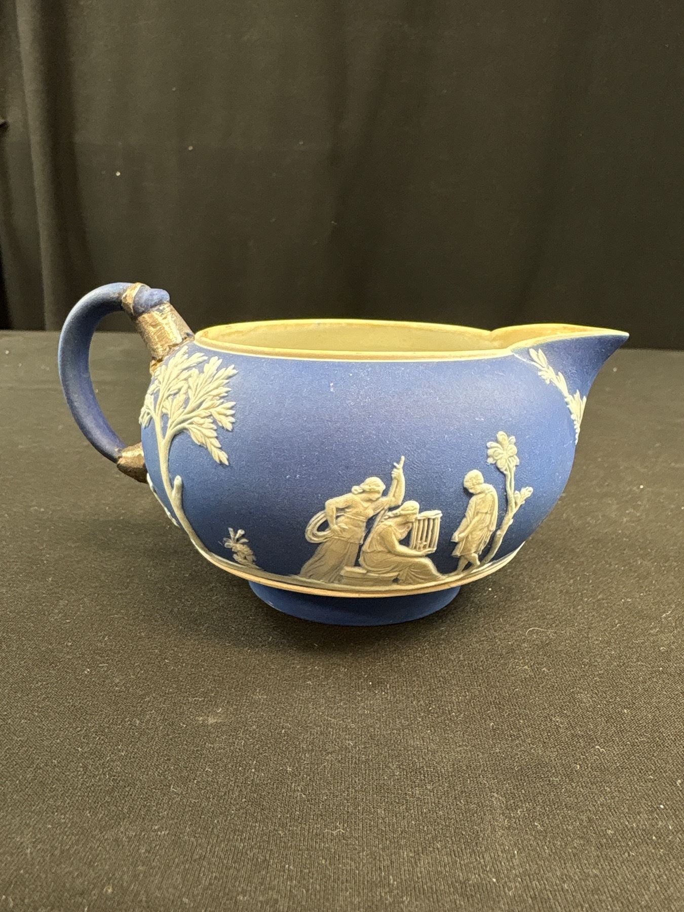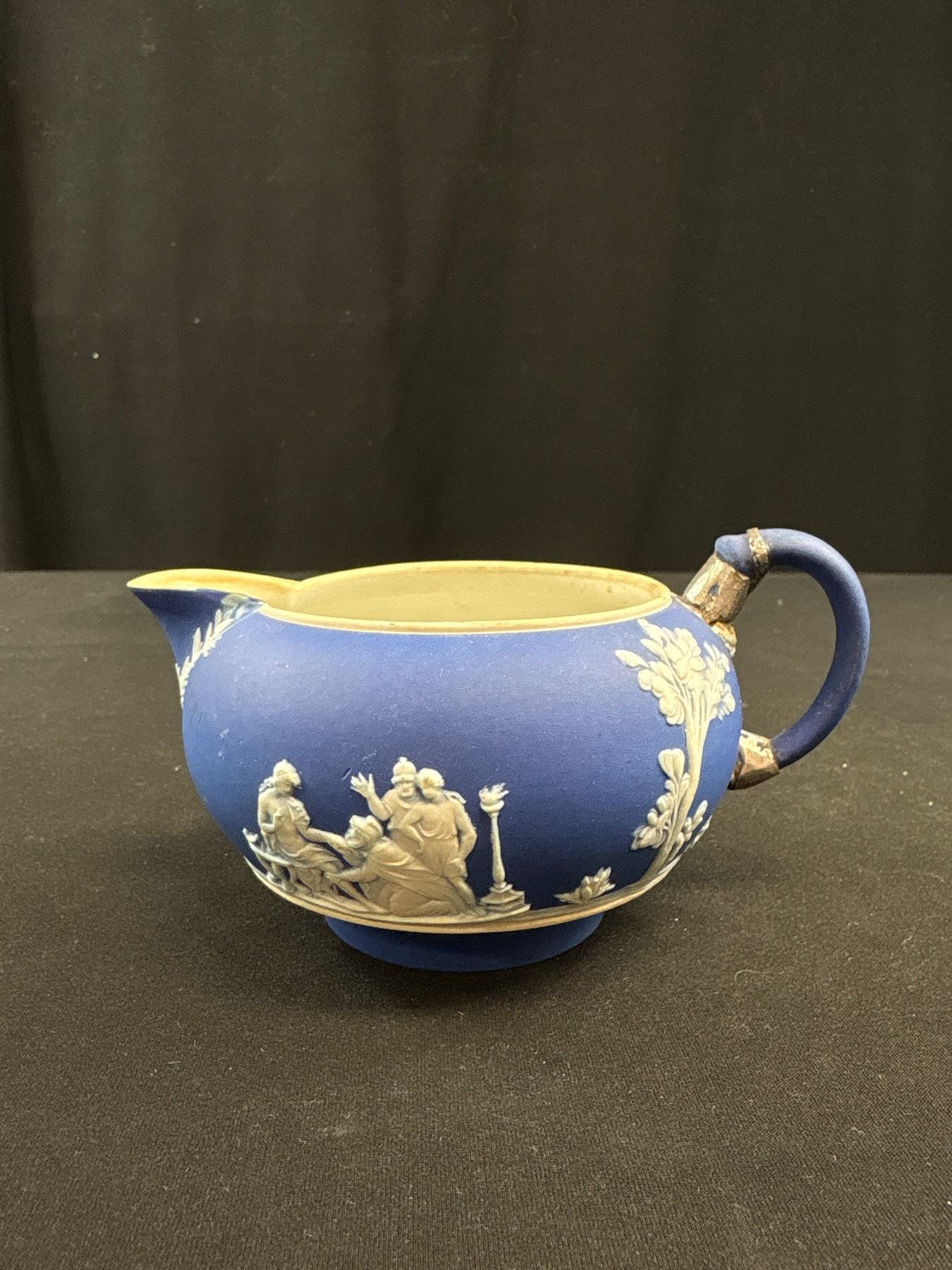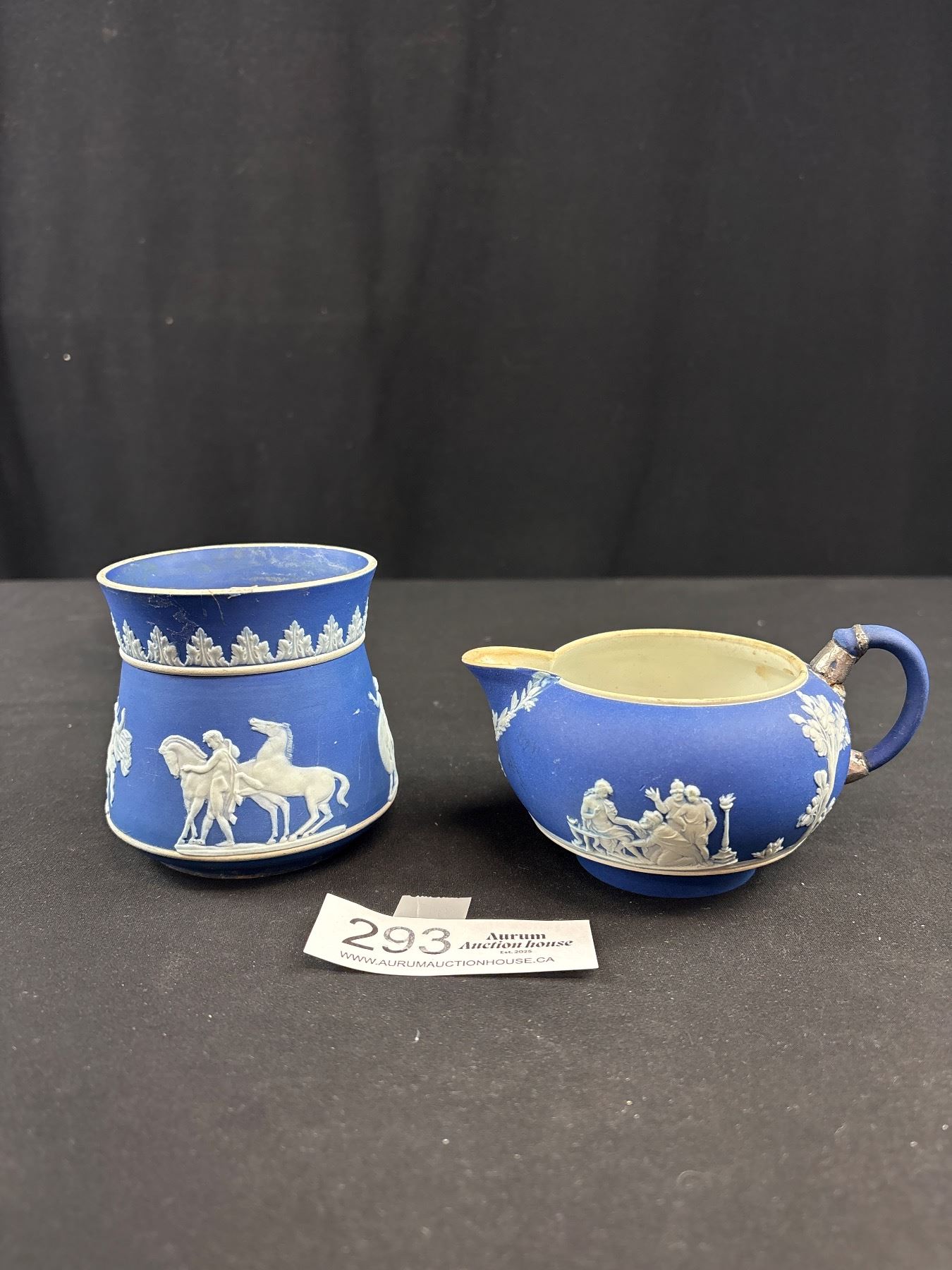 Lot 293 2 Vintage Wedgewood Blue Jasperware Creamer and Mustard Pot without Lid