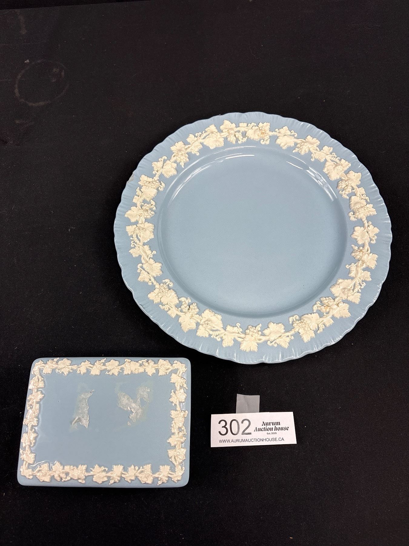 Lot 302 2 Vintage Wedgewood Pieces Trinket Box and Plate 10.5" Dia