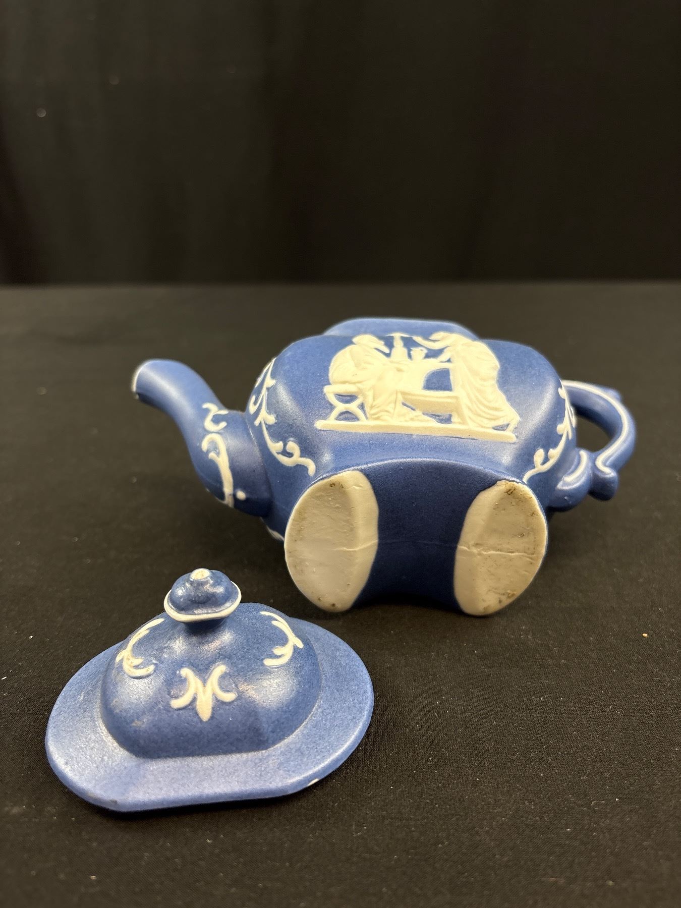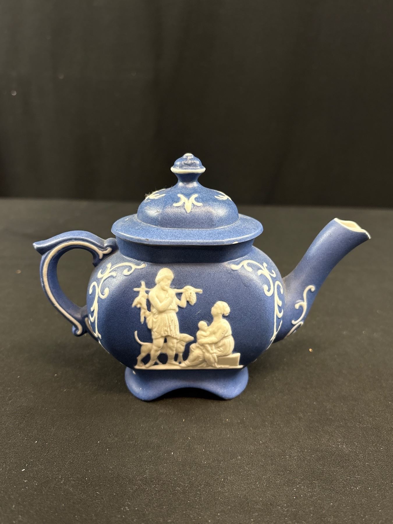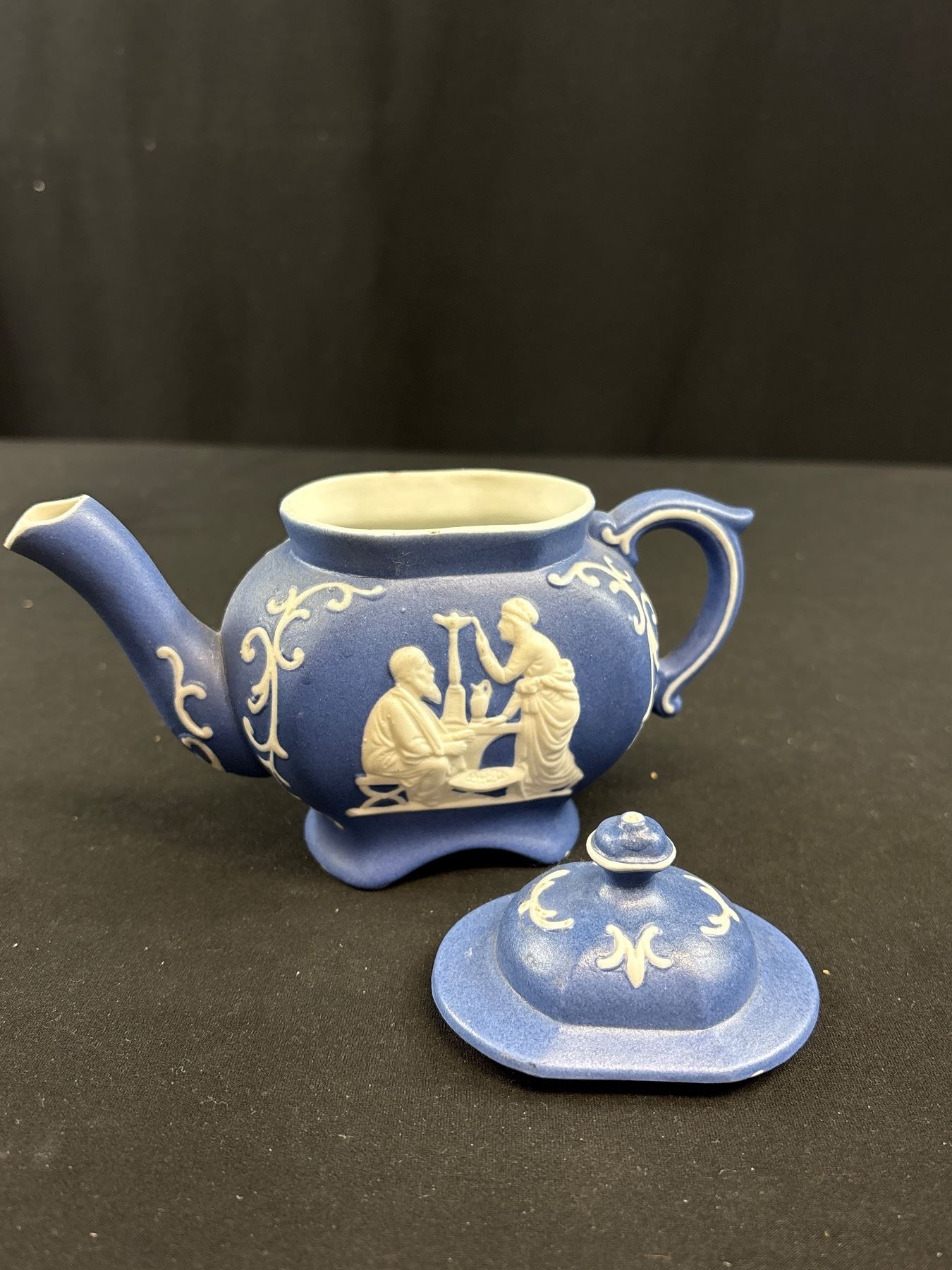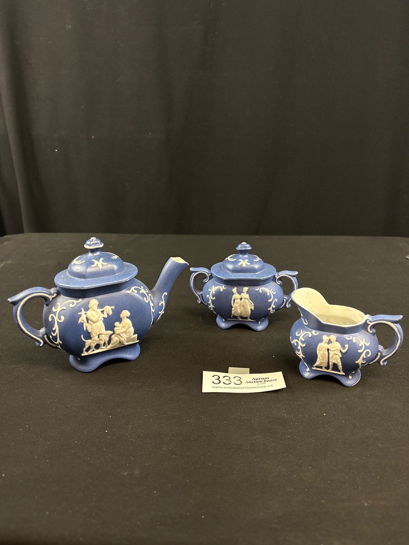 Lot 333 Very Nice Dark Blue Vintage Wedgewood Jasperware Teapot and Cream & Sugar