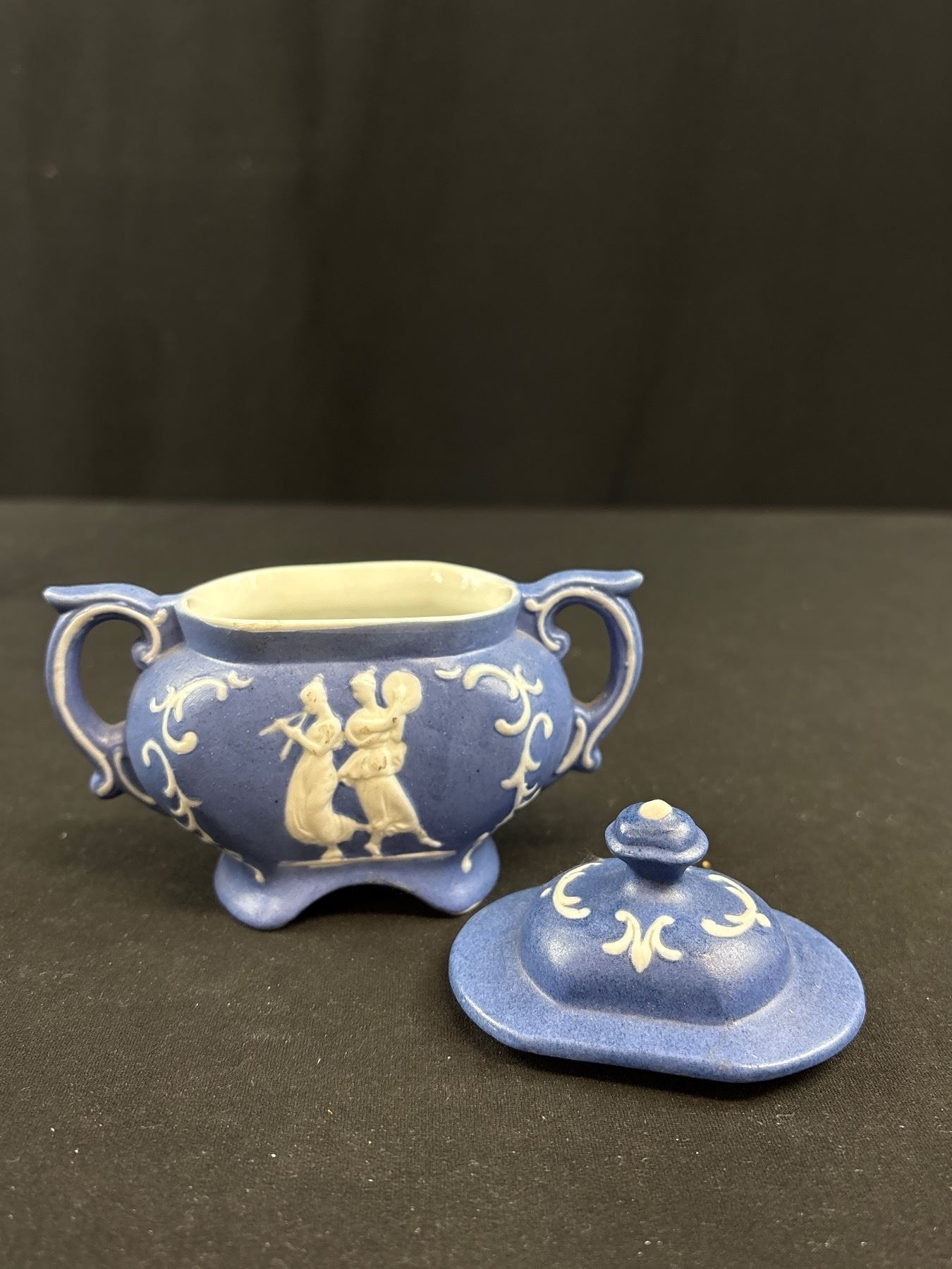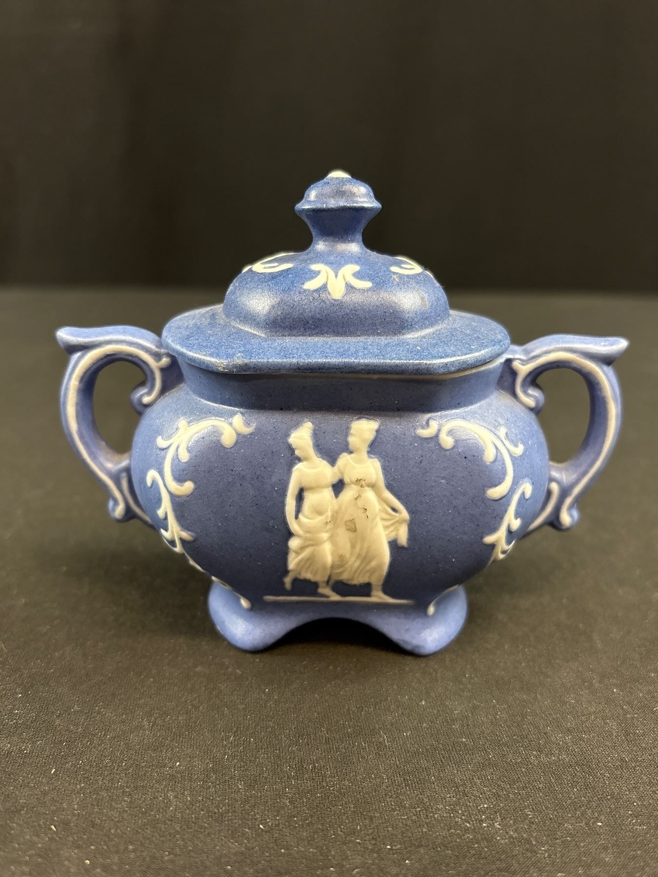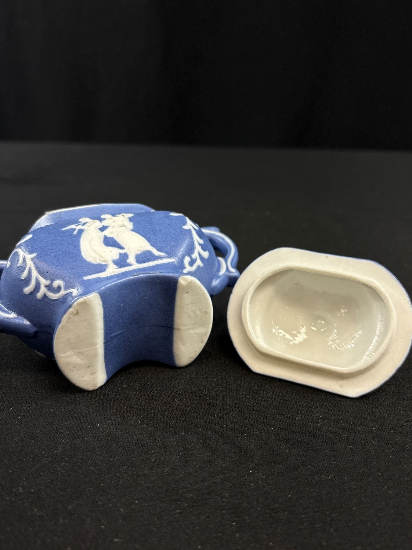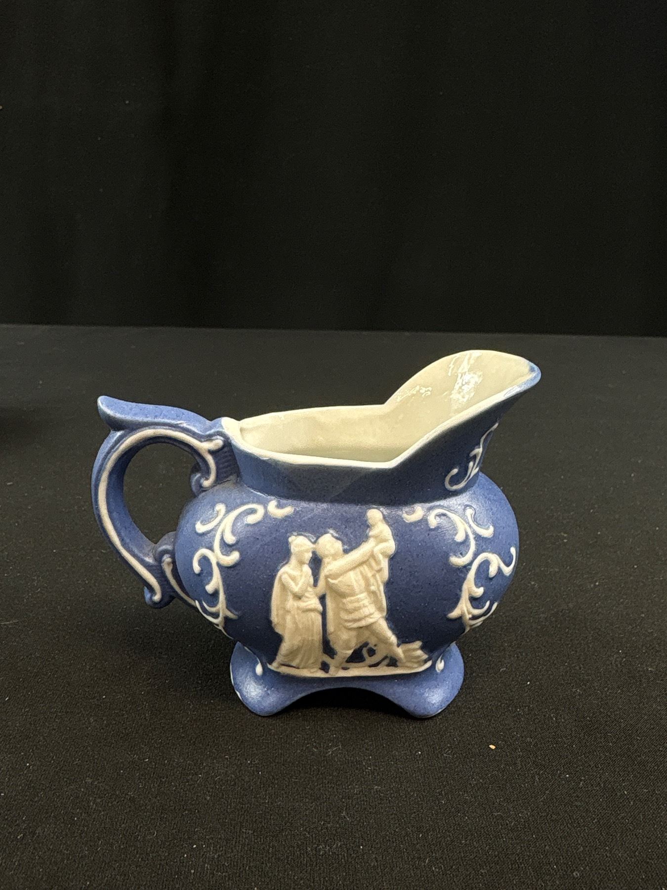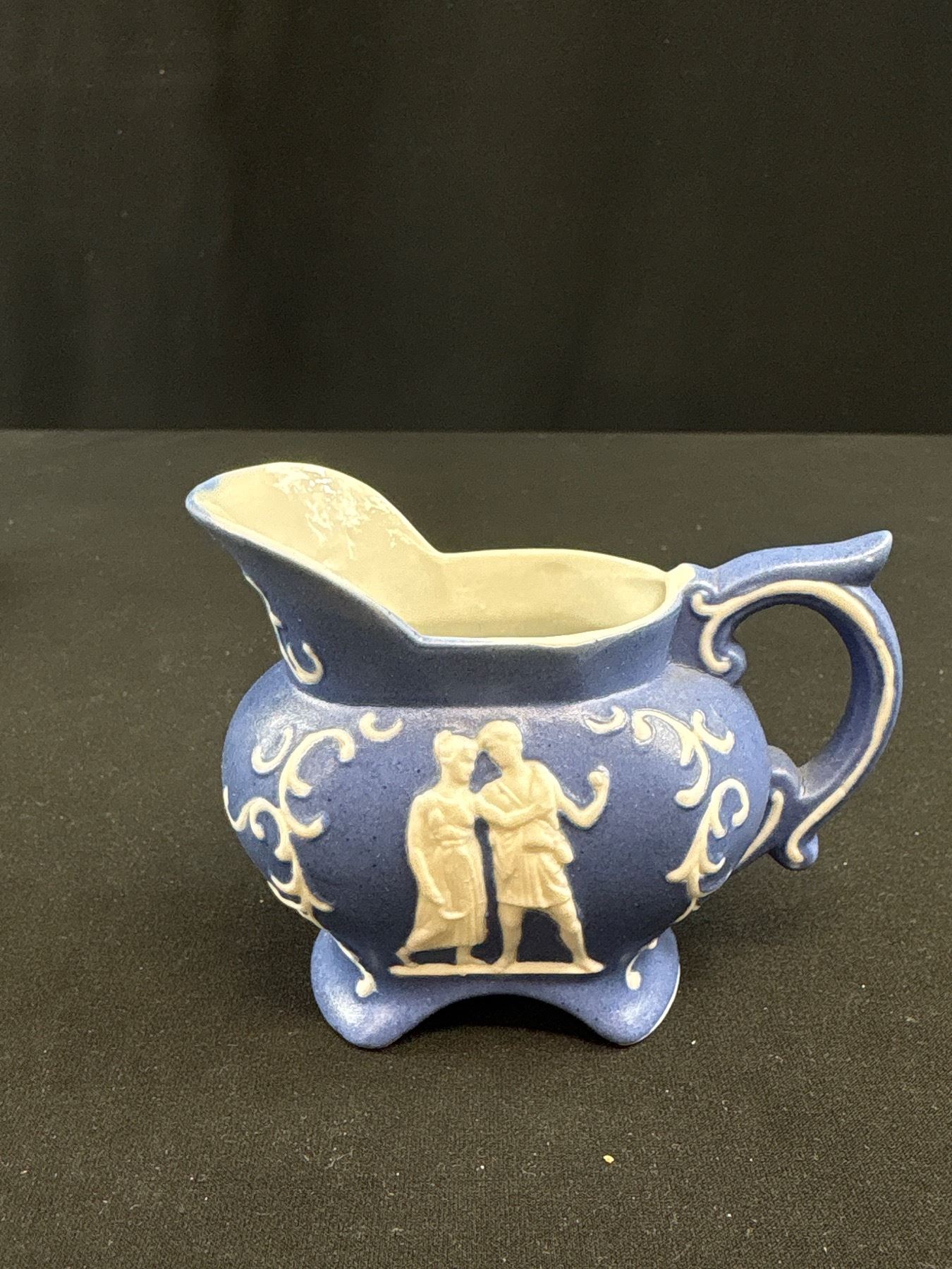 Lot 333 Very Nice Dark Blue Vintage Wedgewood Jasperware Teapot and Cream & Sugar