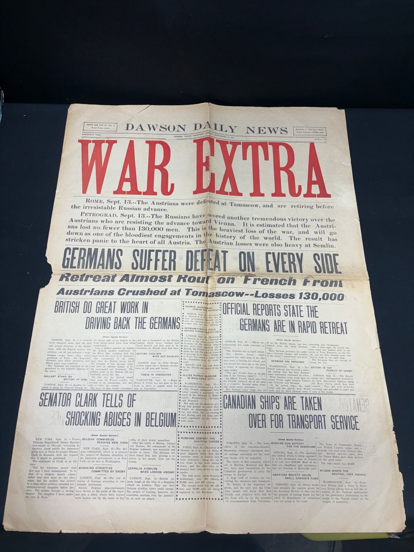 August 7 and September 13, 1914 WAR EXTRA Newspaper