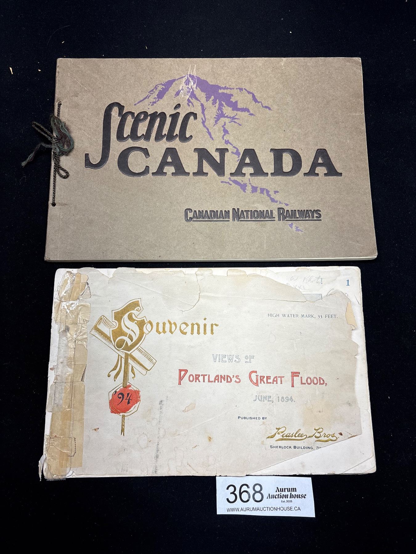 1925 Canadian National Railway Scenic Canada Booklet Great Condition - Lots of Photographs and 1894 Souviner Views of Portland's Great Flood - Poor Condition, Missing Binding so Pages are Loose