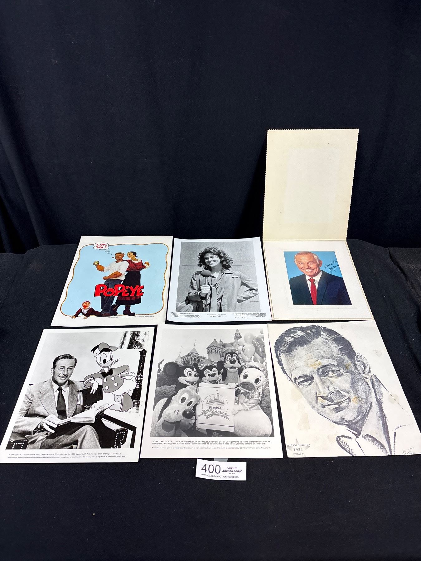 Lot 400 Lot of 6 Entertainment Photos, Walt Disney and Donald Duck, Johnny Carson, Sigourney Weaver +